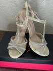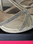 Step out in style with these Silver rhinestones on a beige base, 'Touch of Nina' Heels. The strappy sandals feature a sparkly silver rhinestone pattern with glitter and beaded accents. The open toe stiletto heels are perfect for formal occasions and add a touch of glamour to any dress. The shoes are available in women's size 7M and are suitable for various events. The synthetic upper material ensures durability, while the stiletto heel style provides a chic and elegant look. Absolutely gorgeous pair of shoes. Perfect for prom, homecoming, any formal event. These shoes are an excellent condition and barely show where if it were not for a little soil on the bottom of the SOLE. These issues come in their original box.