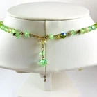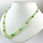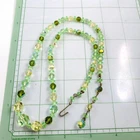 Sparkly Vintage Mid Century Green Aurora Borealis Crystal Beaded Necklace 22" Long. Pre-Owned Estate Jewelry in Very Good Condition. Ready to wear, give as gift or add to a collection. Our Vintage items are mostly from estate sales and vary in age from 100+ years old to more modern pieces. Please use your judgement. Items are photographed on a measuring matte with one-inch squares to give you an idea of size. Any photography props / holders you see are not included.