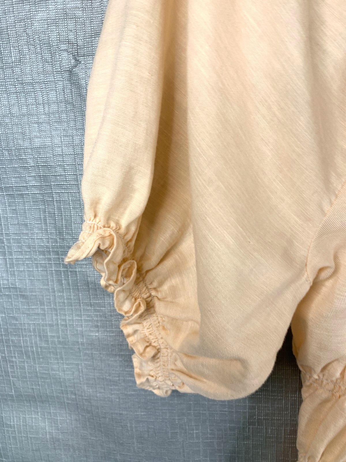 The Spartina 449 Top Cloud Light Pink Leona Short Sleeve Blouse is a stylish and comfortable option for women. Made from a blend of linen, lyocell, and cotton, this blouse features a scoop neck, puff sleeves, and a pullover closure. The pink color and bohemian theme make it perfect for casual occasions or travel during the summer or spring seasons. With its lightweight fabric and elastic accents, this blouse offers a regular fit and is machine washable for easy care. Ideal for those who love the beachy, preppy look. Smoke free home Combined shipping for multiple items is accepted: simply add items to your cart and request for an invoice with combined shipping discount Returns In the event that a return is requested, please contact us within 3 days of receipt of the item. All returns must include all original items undamaged, in re-sellable condition. We will not accept the return of an item if it has been altered in any way including the removal of price tags.