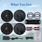 【Superior Sound Quality】: Our speakers have built-in high definition digital stereo effects and impressive enough bass effects. Each speaker can reach a maximum power of 60w. You will be able to stream audio from all of your favorite smart devices and enjoy the clear, pure, high-quality syllables 【Bluetooth 5.0】: Built with a 5.0 Bluetooth wireless streaming receiver.Can doubles as a sound-processing digital amplifier.Independent Digital Amplifier box can connect to all your favorite devices (such as smartphones, and computers) , the coverage with bluetooth can reach 33ft 【Waterproof Rating】: IP66 waterproof speaker that can withstand heavy water splashes and also used for boats, watercraft, camper, RV, hot tub, bathroom, living room, a variety of outdoor off-road vehicles 【240W Max Power】: The speakers have a full range stereo sound reproduction for a complete speaker system. The max power is 240 Watt .That can be easily installed on boat watercraft UTV ATV and other vehicles.Cut-out diameter: 5.31", mounting depth: 2.48" 【What's In The Box & Service】: HMS-6005 speakers*4, amplifier box *2, 3A12V adapter *2, DC12V wires x *2,speakers wires x *4, screws x *16, Product Manual *1. All of our products have passed strictly quality control before we delivery for you,provide year and premium customers service ,and 24-Hour After-Sales Q&A