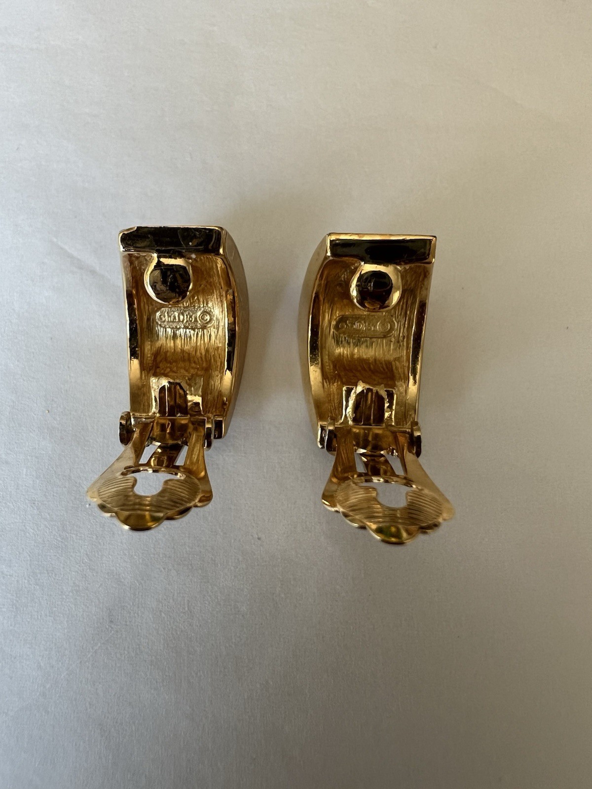 Vintage Karl Lagerfeld KL Logo Gold Tone Handbag Clip Earrings