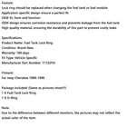 Product Description Feature: Lock ring should be replaced when changing the fuel tank or fuel module Application specific design ensure a perfect fit OEM fit, form and function OEM design ensures corrosion resistance and prevents leakage from the fuel tank High quality material, ensuring the durability of this part to prevent costly leaks Specifications: Product Name: Fuel Tank Lock Ring Condition: Brand New Warranty: 180 days Fit Type: Vehicle Specific Manufacturer Part Number: 71722YH Fitment: For Jeep Cherokee 1984-1996 Package included: (Same as pictures show!!!) 1 X Fuel Tank Lock Ring 1 X O-Ring Note: Due to the difference between different monitors, the pictures may not reflect the actual color of the item. ♦ If you are not sure about the part fitment to your vehicle, please supply your Vehicle Model / VIN number / OE Part Number we will check it for you! ♦ Compatibility Chart is for the reference only. The best way to check compatibility is to check the Part Number on your old unit if possible. SHIPPING & HANDLING RETURNS WARRANTY ABOUT US ♦Every item will be inspected and packed carefully before shipping. ♦ Processing Time : shipped within 1 business days (Mon-Fri, excludes holidays) ♦ Estimated delivery time : 3-5 business days . ♦ Tracking Info : Provided automatically via eBay. ♦All orders will be shipped through USPS First Class, UPS and Fedex depends on the weight of the items. ♦ Fast & Reliable Shipping – Your order is our priority! Same-Day Shipping: Order by 2 PM EST, ships today! 🌍 Ships from U.S. Warehouse – No long waits! 📦 Standard Shipping (Free): 3-5 business days (U.S. only). We Want You to Love Your Purchase! Our 60-day return policy protects you: ✨ STEP 1 : Message Us First - we often solve issues without returns! ✨ STEP 2 : If the return is due to change of mind, select "Didn't like item" or "Ordered by mistake" . For tem not as described, provide details and photos to help us assist you promptly. Why Contacting Us First Helps You: • Faster solutions (often within 48 hours !) • Possible instant refund or replacement options • Personalized return instructions for your case For Your Protection: • We carefully inspect all returns • Please use tracking when shipping back • "Not as described" returns require photos/video for fastest resolution Help us serve you better by contacting us first! No-Questions-Asked Warranty ♦HASSLE-FREE WARRANTY • 90-365 Day Coverage (varies by product - see listing details) • No Return Required for claims under $20 - we ship replacements immediately ✖ Exclusions : Physical damage (drops/accidents) Installation errors (YouTube tutorial links provided) ♦ Claim Process: Contact us via eBay Messages within warranty period Clear photos/video of the issue We respond within 24-48 hours with solution About Artudatech Established in 2009, Artudatech is specialized in auto parts and are manufacturers of leading auto parts brands,It is headquartered in California with convenient transportation. Artudatech including majority of the best seller autoparts which are fully compatible with the vehicles. When you need parts for your car, reach out to us so that your car could go more far than ever. All of the parts have warranty. Please contact with our customer service crew if you encounter any questions or concerns, we stand behind every part in our store. Excellent product and considerate service. Let time verify quality and win the future with reputation. We hope you can find what you want here and enjoy your shopping. SHIPPING & HANDLING ♦Every item will be inspected and packed carefully before shipping. ♦ Processing Time : shipped within 1 business days (Mon-Fri, excludes holidays) ♦ Estimated delivery time : 3-5 business days . ♦ Tracking Info : Provided automatically via eBay. ♦All orders will be shipped through USPS First Class, UPS and Fedex depends on the weight of the items. ♦ Fast & Reliable Shipping – Your order is our priority! Same-Day Shipping: Order by 2 PM EST, ships today! 🌍 Ships from U.S. Warehouse – No long waits! 📦 Standard Shipping (Free): 3-5 business days (U.S. only). RETURNS We Want You to Love Your Purchase! Our 60-day return policy protects you: ✨ STEP 1 : Message Us First - we often solve issues without returns! ✨ STEP 2 : If the return is due to change of mind, select "Didn't like item" or "Ordered by mistake" . For tem not as described, provide details and photos to help us assist you promptly. Why Contacting Us First Helps You: • Faster solutions (often within 48 hours !) • Possible instant refund or replacement options • Personalized return instructions for your case For Your Protection: • We carefully inspect all returns • Please use tracking when shipping back • "Not as described" returns require photos/video for fastest resolution Help us serve you better by contacting us first! WARRANTY No-Questions-Asked Warranty ♦HASSLE-FREE WARRANTY • 90-365 Day Coverage (varies by product - see listing details) • No Return Required for claims under $20 - we ship replacements immediately ✖ Exclusions : Physical damage (drops/accidents) Installation errors (YouTube tutorial links provided) ♦ Claim Process: Contact us via eBay Messages within warranty period Clear photos/video of the issue We respond within 24-48 hours with solution ABOUT US About Artudatech Established in 2009, Artudatech is specialized in auto parts and are manufacturers of leading auto parts brands,It is headquartered in California with convenient transportation. Artudatech including majority of the best seller autoparts which are fully compatible with the vehicles. When you need parts for your car, reach out to us so that your car could go more far than ever. All of the parts have warranty. Please contact with our customer service crew if you encounter any questions or concerns, we stand behind every part in our store. Excellent product and considerate service. L