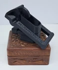 Unique loader for Glock 9mm double stack magazines. Glock 17/26/34/45/19X. Use the lever to compress the spring, insert the round and hold light pressure on the round with your thumb while you raise the lever. Push the round in and repeat. Very easy, almost no difference between force used to insert the first and the last round, and does not force open the retaining tabs on your magazines. Check out the video! (Video should be up by 9/16/24). Made entirely from black ASA, a durable plastic that is UV stable. Made in the USA! Model: Cobra Kal Basic dimensions 4" x 2.5" x 2.5". Glock 17, Glock 26, Glock 34, Glock 45, Glock 19x Thank you for looking!