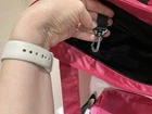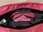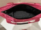 This is a must have tote! It is eye catching and loaded with functionality. Pre-owned. Slight wear at bottom corner, see photo. Bright pink color. Front ventilated snap pocket. Interior has 2 lined cargo pockets. One interior zip pocket. Interior key clip. Velcro wall pocket. Detachable pink accessory pouch. Roomy and water resistant. Height 16 inches. Width 16 inches at top of tote tapers to 15 at the bottom. Depth 4.5 inches. Smoke free, pet free home.