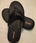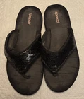 The Speedo Women's Flip Flops in size 9 are a stylish and comfortable choice for casual wear. These black sandals feature a slip-on design with a solid pattern and a casual occasion. The open toe design and flat heel make them perfect for all seasons. The Speedo logo accents add a touch of style, while the rubber outsole and synthetic insole provide durability and comfort. Whether you're heading to the beach or running errands, these Speedo sandals are a versatile and fashionable option.