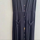 Introducing a beautiful black maxi dress from Spense, perfect for casual occasions. This dress features a button front closure, sleeveless design, and a solid pattern. The dress is made of high-quality jersey fabric, which gives it a comfortable and stretchy feel. The dress also has a belted feature that adds a touch of elegance to the overall look. Its size is small, and it is a regular fit for women. The dress is perfect for anyone who wants to look stylish and feel comfortable.