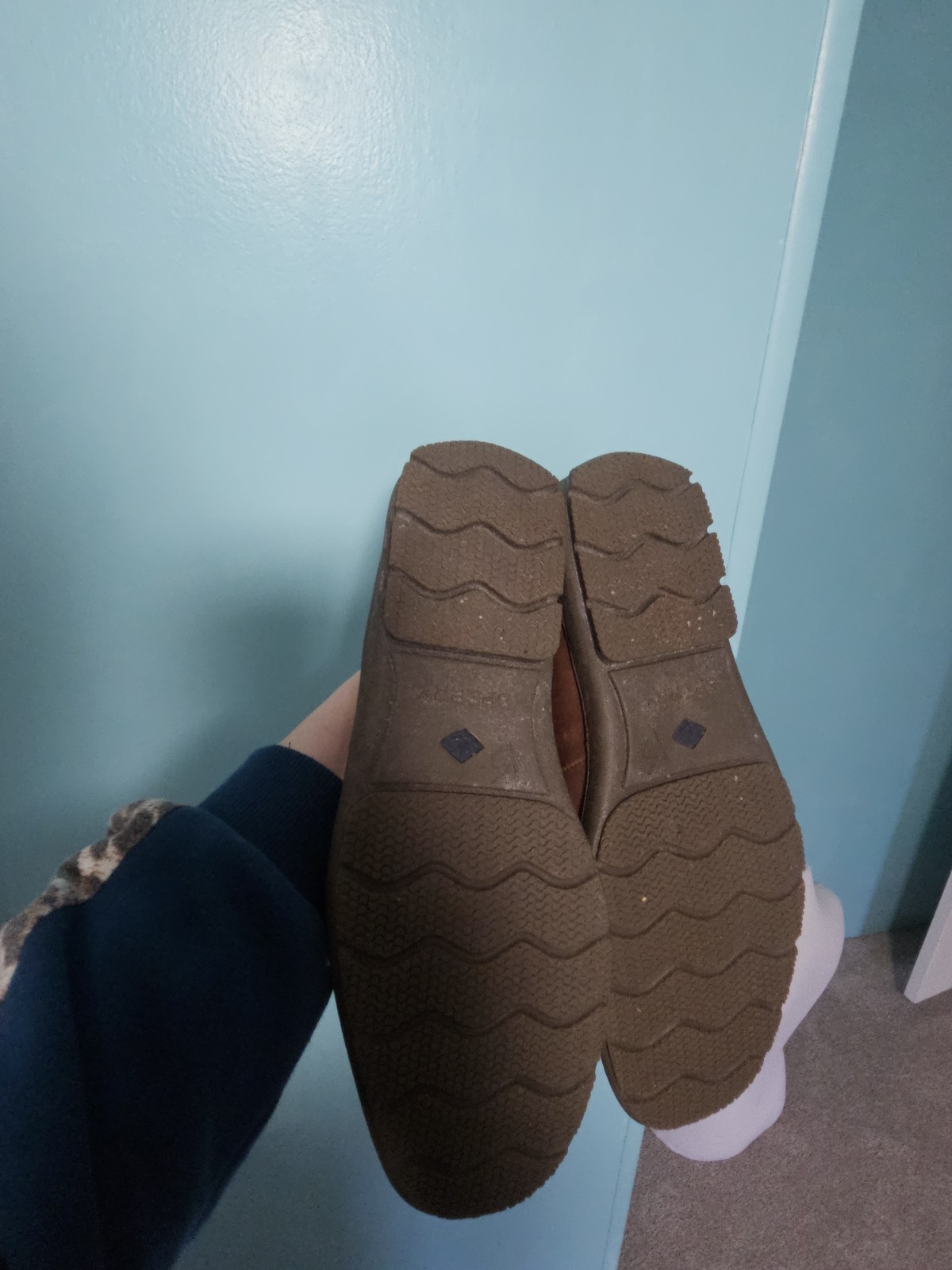 The Sperry Top Sider Shoe Mens 11M in brown leather is a classic and stylish slip-on option for men looking for a comfortable casual shoe. With a solid pattern, leather upper and outsole, and the signature Sperry brand, this boat shoe is a versatile option for everyday wear. The slip-on closure and cushioned insole provide additional comfort and convenience, making it a great choice for men who value both style and functionality in their footwear.