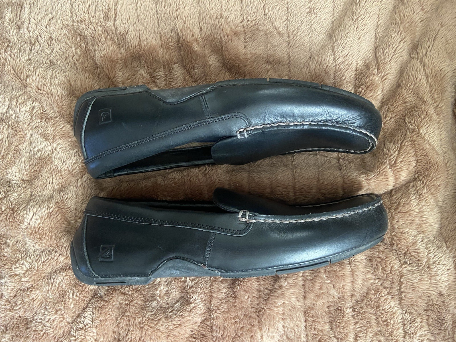 Sperry Top-Sider. Black leather loafers. Men’s size 10.5. Made in Indonesia.