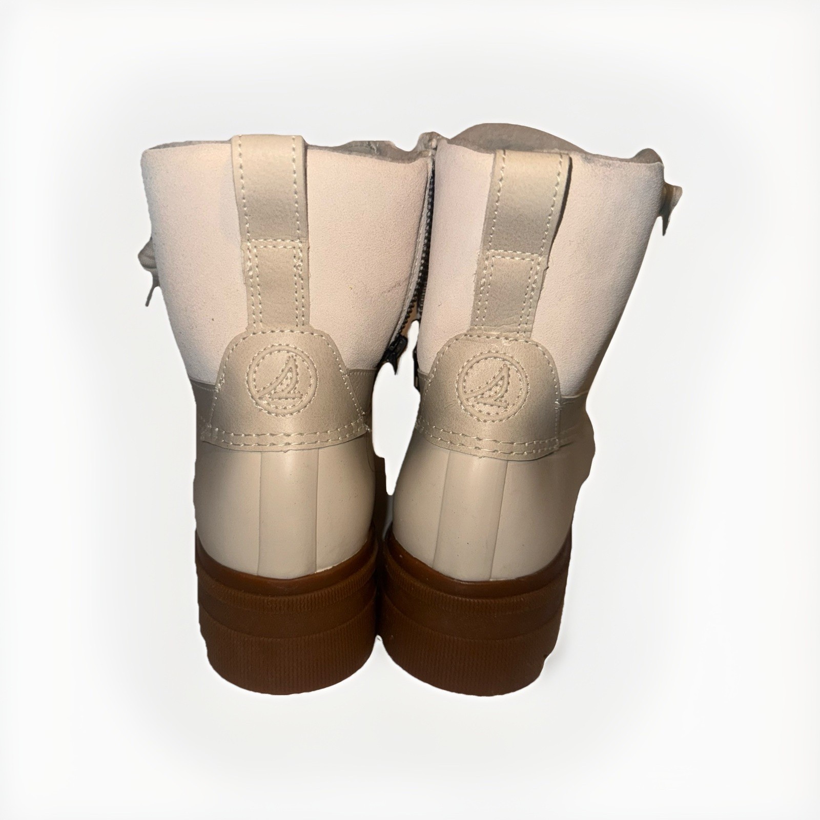 The Sperry Syren Ascend Boot in pearl white is a fantastic find—stylish, comfortable, and versatile. The block heel adds height without sacrificing stability, and the lace-up design gives a chic, polished look. Perfect for both casual and dressy occasions, these boots are durable with a solid rubber sole and cozy synthetic lining. Great condition, true to size, and ready to elevate any outfit!