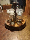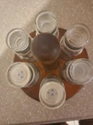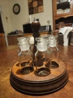 The "Spice carousel with six jars" is a spice jar set that includes six jars. Each jar has a height, length, and width of 6 inches, making them ideal for storing and organizing various spices in the kitchen. The set comes with a carousel for easy access and display of the jars, adding a touch of rustic charm to any kitchen decor. Perfect for those looking to keep their spices organized and easily accessible while adding a decorative element to their kitchen space. Two jars can be used as shakers, the other four are lo I'mose leaf.