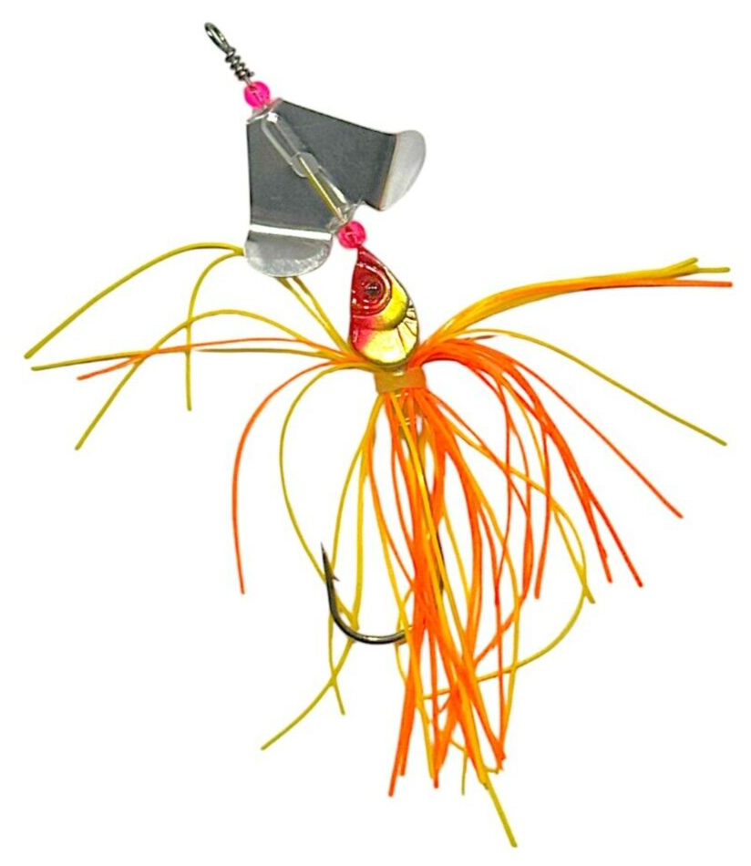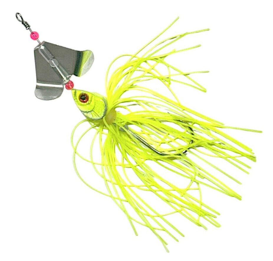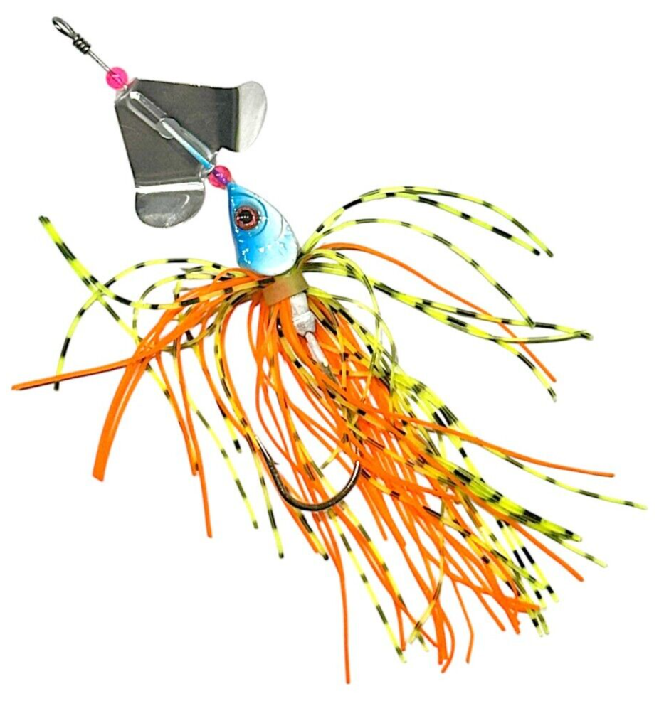 The product is a 14g spinnerbait fishing lure designed for freshwater and saltwater fishing. It is 3.5 inches long and shaped like a fish, suitable for catching bass, trout, and pike. This spinning lure is ideal for casting and targeting various fish species such as muskie, striped bass, rainbow trout, and northern pike.