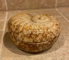 Brand : Unbranded Item : Nautilus Shell Trinket Box with Lid Material : Ceramic Color : Natural Browns and Sandy Colors Size : 3" x 4" x 2" height. Weight Unpackaged : 6.4 oz Details : This is an unmarked trinket dish made of ceramic pottery. The shape is very unique. It is a nautilus seashell. The colors are amazing with a beautiful glaze. 3" x 4" x 2" height. So cute in a beach theme bathroom or bedroom on the dresser. Pictures: Please see all pictures for design and details. Pictures are of the exact item you will receive and sometimes can show more detail and condition than can be described in writing. Please feel free to reach out for any additional information not available in listing and/or additional pictures. Shipping: There are multiple shipping options to meet your needs depending on your location. Shipping can be combined when appropriate for a shipping discount, to be given as a refund once shipped. Please note, not all items can be safely combined. If buyer desires a different method of shipping (FedEx or UPS), please contact for consideration.