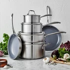 Store New Arrivals Add to Favorite View Feedback Contact Spirit 3-Ply 10-Pc Stainless Steel Ceramic Nonstick Pots and Pans Set, Dutch Oven, Fry Pan Description Item model number 64080-001 Item Weight 22.9 pounds Closure Material Glass Special Feature Gas Stovetop Compatible Color Stainless Steel Included Components Fry Pan 8"; Fry Pan 10"; 1QT Saucepan w/Lid; 2QT Saucepan w/Lid; 3QT Sautepan w/Lid; 6 QT Dutch Oven w/Lid Material Stainless Steel Material Type Free PTFE Free, PFOA Free Is Dishwasher Safe Yes Global Trade Identification Number 00035886304553 Is Oven Safe Yes Handle Material Stainless Steel With Lid Yes Manufacturer J.A. Henckels Utensil Compatibility Standard kitchen utensils Size 10-pc Ceramic Is Discontinued By Manufacturer No Product Dimensions 22 x 14 x 9 inches Compatibility Options dishwasher, oven Number of Pieces 10 SET INCLUDES: 8-inch fry pan, 10-inch fry pan, 1-quart saucepan w/lid, 2-quart saucepan w/lid, 3-quart sauté pan w/lid, and 6-quart Dutch oven w/lid HEATS QUICKLY: 3-Ply construction from rim to rim – 3mm thick aluminum core conducts heat quickly and evenly NONSTICK BOTTOM: Nonstick ceramic coating offers quick release and easy clean up. No PTFE or PFOA used in this product COMFORTABLE HANDLE: Large, stay-cool handles designed for easy maneuvering and control while wearing oven mitts NO DRIP POUR: Flared rim for clean and dripless pouring KEEP WATCH OVER COOKING: Tempered glass lid for easy monitoring of cooking OVEN SAFE: Oven safe to 400°F EASY TO CLEAN: Dishwasher safe ZWILLING Spirit 3-Ply gets you in the mood to cook. Thanks to a thick, aluminum core, these versatile pans are fast-heating and boast an even cooking surface. The exclusive, stay cool handles are designed for easy maneuvering with oven mitts and the dripless pouring rims help prevent kitchen spills. The tight-fitting tempered glass lids allow you to effortlessly monitor your cooking.The ZWILLING Spirit ceramic nonstick coating is a healthy alternative to traditional coatings. Less oil is required and no toxic fumes are released into the air when the pan is heated at high temperatures. Set includes 8" fry pan, 10" fry pan, 1-qt saucepan with lid, 2-qt saucepan with lid, 3-qt saute pan with lid, and 6-qt ducth oven with lid. ABOUT US We offer the best prices around on high quality products. Our E-store includes media such as books, movies, music and games while offering electronics, toys, sporting apparel, clothing, tools, general home, garden items and more. SHIPPING We are always working hard to ensure your package arrives as soon as possible. Please understand that some factors like weather, high postal traffic, and the performance of shipping companies are outside of our control. We offer free shipping to the lower 48 states and ship within 2 business days of payment, usually sooner. We do not accept P.O. Boxes. Please provide a physical address. For shipping outside of the continental USA, we only use eBay's Global Shipping Program.The item is shipped to KY and then sent to the rest of the world. International customers are responsible for all duties and taxes. Continue to check out in order to calculate costs for shipping the item to your country. Messages regarding eBay's Global Shipping Program MUST be directed at eBay EXCLUSIVELY. RETURNS We offer a 30-Day Return Policy on items which you are not completely satisfied with. You have the option for a full-refund or an exchange of the item. No returns are available on items shipped outside of the USA. PAYMENT We accept PayPal. CONTACT US This page content is yet to come Please ad us to your favorite seller and visit again later Thank You CUSTOMER SATISFACTION We try our very best to make sure every customer is completely satisfied. If there's a problem, message us! We're happy to help. WE ACCEPT Copyright © 2021 AutoDS. | All Rights Reserved