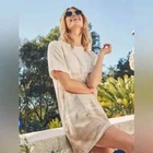 Because we love a good basic tee, we couldn't resist making the Leilani Dress. Cut in a standard T-shirt silhouette -- with its classic crew neck and short sleeves -- and a loose fit that grazes over you but leaves plenty of room for breathable comfort. It hits just above the knee and its seasonless look can be styled or layered however you like. Wear it with sneakers, tie a knot at the hem for warm-weather look, top it over swimwear, layer with a zip-up hoodie on top -- just make it your own. Crew neck Short sleeves Hits above the knee Classic T-shirt silhouette 60% Cotton 40% Modal Machine wash cold Imported Measurements from size small Front Length from HPS 34 1/2" Back Length from HPS 34 1/2" Chest/Bust Width 20"