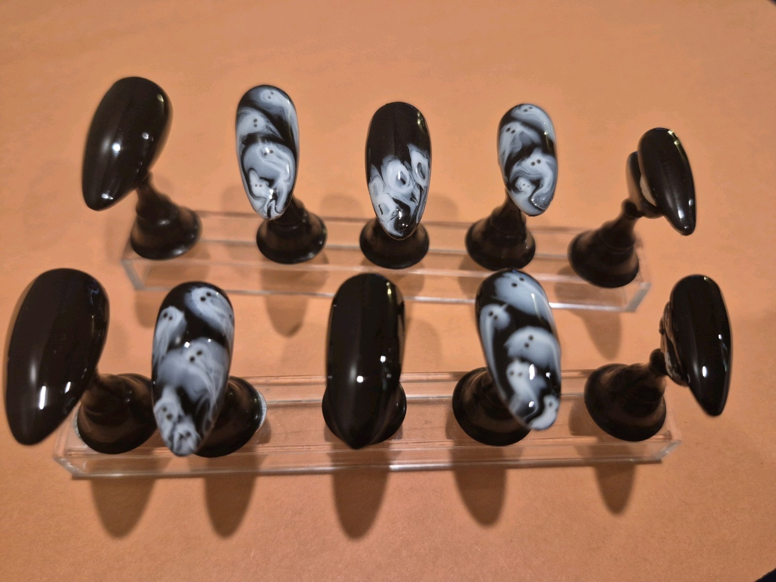 These Halloween press-on nails are so fun and easy to apply! The ghost design is adorable yet spooky, and the almond shape gives them a chic look. They fit perfectly, stayed on all night, and got so many compliments. Perfect for Halloween parties or just adding a festive vibe!