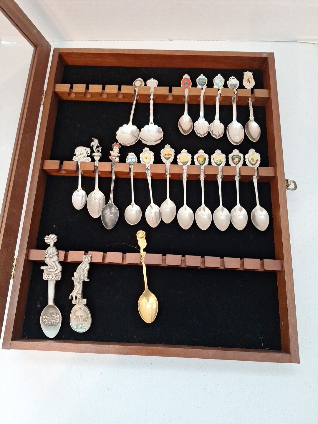 This Spoon Display Case is the perfect addition to your collection. Crafted from beautiful brown wood, it provides a stylish and functional way to showcase your spoons. The rack cabinet design is ideal for storing and displaying your favorite tea souvenirs. With its 21 pieces, this collection is sure to impress your guests and add a touch of elegance to any room. The spoon display case is perfect for collectors of all levels, and its unique design is sure to make it a standout piece in your collection.