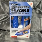 New, box is damaged as seen in photos Everything included! 16 OUNCES TOTAL: Includes 2 convincing sunscreen flasks that hold 8oz each, which equals 10 shots total SAVE YOUR SPENDING MONEY: Perfect for a day out with friends, cruises, festivals, beach days, theme parks, and more UNIQUE DESIGNS: 15 SPF and 30 SPF sunscreen bottle designs make it easy to fool security so you can take your flask virtually anywhere EASY FILLING: Includes mess-free funnel so you can easily fill flasks with your favorite drinks FOOD GRADE PLASTIC: Made from food safe materials, always wash before using Ships within 24/hrs!