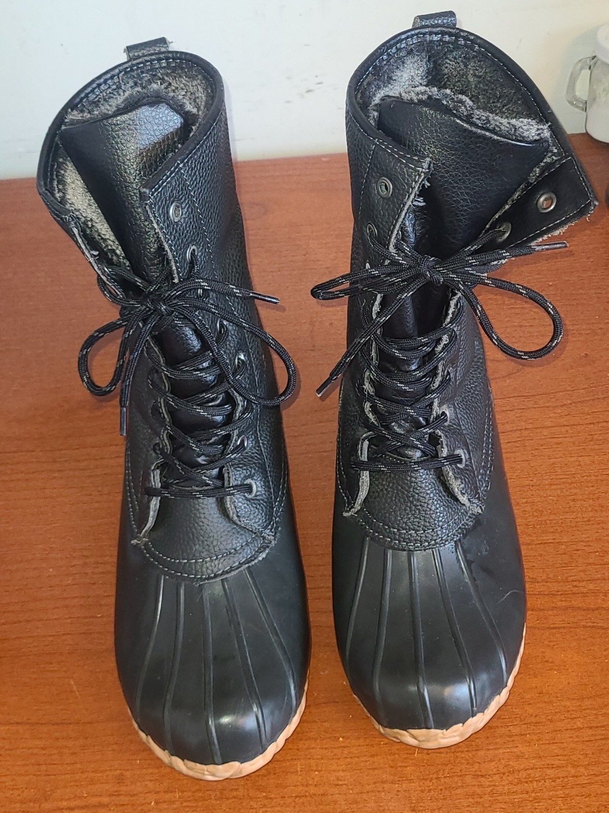 Elevate your outdoor style with these Sporto Women's Duck Boots. Perfect for travel, activewear, casual and workwear, these boots feature a solid black color with faux fur accents and lining. The lace-up closure and mid-calf boot shaft height provide a comfortable fit, while the rubber outsole and flat heel offer durability and stability. These duck boots are perfect for fall, winter, and spring, making them a versatile addition to your wardrobe. The round toe shape, block heel style, and faux fur insole material add to the overall design of the boot. These boots are available in US size 10, UK size 8, and EU size 41. Add these stylish boots to your collection today!
