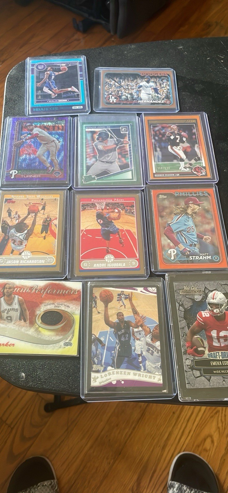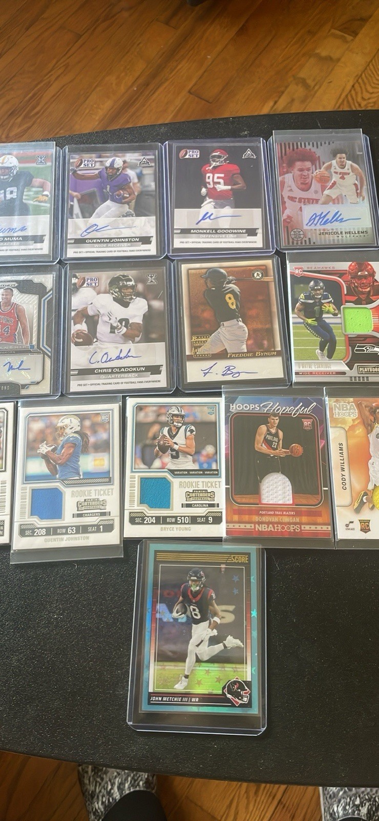 The product being described is likely a collection of sports trading cards, specifically featuring rookie cards, autographed cards, memorabilia cards, and numbered cards from various sports leagues such as the NBA, NFL, and MLB. This lot offers a great deal for collectors looking to add unique and valuable cards to their collection from different sports entities. The assortment of cards offers a variety of options for fans to enjoy and invest in their favorite players or teams.