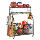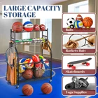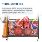 【KEEP ALL BALLS WELL ORGANIZED】This garage organizer combines with 2 big storage bins, 1 wire mesh basket and 1 tier ball rack, which can organize all your indoor & outdoor sports items, basketball, baseball and even your kids toys. 【COMES WITH MORE ACCESSORIES】Comes with a separable bat rack ( for tennis rackets, trekking poles, football bats... ) , 4 movable hanging hooks ( for items such as bags, gloves, ball caps, jerseys and all your other sportswear ) , and 4 heavy-duty lockable wheels, this multifunctional garage ball organizer must be your unmissable choice. 【DURABLE STEEL STRUCTURE GARAGE BALL ORGANIZER】The garage sports equipment organizer is made of high-quality steel, with a stable and sturdy structure. The powder coat finish is scratch and rust resistant so it will last for many years. Garage sports organizer dimension is 36.2" L x 16.5" W x 44.3" H. 【SUITABLE FOR MORE USE OCCASIONS】This sport utility storage organizer is ideal for your garage, basement, playgroup, gym, schools and any workplace, it can easily make your garage tidy and well-organized, the lockable wheels can meet your needs to move and fix at any time. 【100% GUARANTEED】Simple structure AND instruction makes this ball storage rack easy to install, and please contact us in time if you meet any other problem in the use process.
