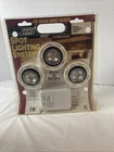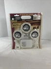 Illuminate your home with the IDC Spot Lighting Under Cabinet Shelf Lighting System 3 Light Kit. This modern plug-in light kit features clear white light color and a chrome-plated finish that complements any interior decor. The corded power source provides 120V voltage, and the dimmable feature allows you to adjust the brightness to suit your preferences. The 3-inch round shade shape and light sensor type add to the convenience of this lighting system, making it suitable for indoor use in various rooms such as the study, bathroom, home office/study, den, utility/laundry room, cloakroom, entryway, garage, kitchen, bedroom, living room, workshop, and dining room. This Energy Star 10 Stars certified lighting technology uses quartz halogen and is designed for adults. Assembly is required, but the result is a stylish and functional lighting system that enhances the overall ambiance of your home.