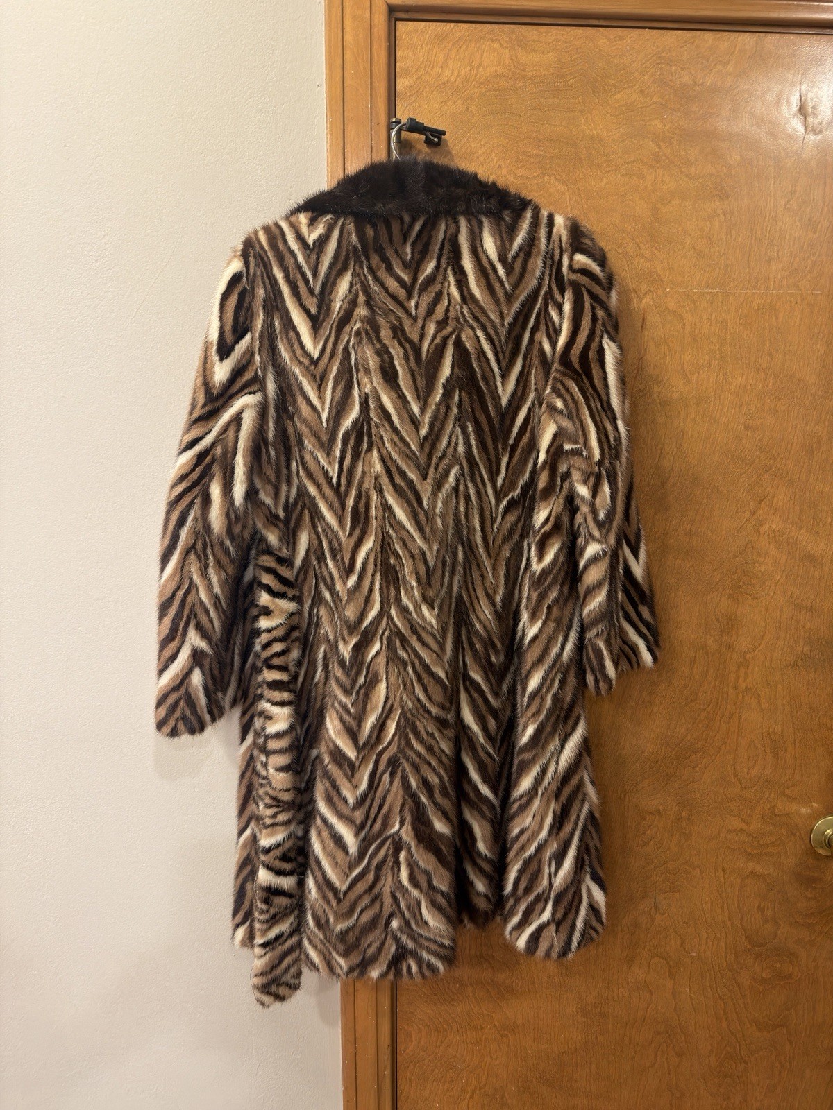 The jacket fits like a small/medium idk how to explain it there isn’t a label I measured collar length it’s 36 and pit to pit is 19 inches if you have any questions please message me thank you! Real mink fur too