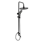 Application It is suitable for bathrooms in homes, hotels, guesthouses, apartments, etc. It can be used for showers for adults, children as well as pets. Easy Installation Step 1: Install the shower column into the 3-way water diverter. Step 2: Loosen the fastener with an Allen key, attach a 3-way water diverter to the shower arm, and use an Allen key to tighten it. Step 3: Attach the rain shower head to the shower column. Step 4: Attach shower hose to 3-way diverter and water flow regulator. Step 5: Connect the hose to the handheld shower head. Package Included 1* Rainfall Shower Head 1*Handheld Shower 1*Stainless Steel Hose 1*3-Way Diverter 1*Shower Bracket 4*Washers 2 * Allen Keys Other Accessories for Installation Spray Paint Shower Faucet Set, Rainfall Spout, Round Head Tap Description A comfortable shower is like a full-body spa, washing away the fatigue of the day and making you feel healed physically and mentally. Our wall-mounted shower system has a superior stainless steel body, shower hose, and a sturdy shower bracket, making it strong and durable. The low-key and luxurious black color adds modern decor to your bathroom. Key Features Sturdy and Durable: Made of high-quality 304 stainless steel, the shower system is strong, durable, rustproof, and resistant to cracks or leaks. You can enjoy your shower with confidence. Air Pressurization: Air pressurization allows about 30% of air and 70% of water to mix well. The oxygen-rich water reduces water use and improves shower comfort. Adjustable Design: The large height adjustment range (42.71-52.56 inches), the 360° swiveling and angle-adjustable overhead spray and the 180° adjustable hand shower holder provide a comfortable showering experience for users of all heights. Comfortable Shower: The oversized 7.87 inch diameter shower head with a rainfall shower mode and evenly distributed silicone holes can bring you a luxurious water flow that envelopes the whole body, giving you a pleasing shower experience with super comfort. The handheld shower with strong rain, strong spray, rain&mist modes can meet your different showering needs. 3-Ways Water Output: The 3-way water diverter allows for connections with a rain shower head, a handheld shower, and a faucet, thus ensuring three ways of water output that can be switched through the switch handle. Furthermore, you can use the rotary knob to adjust the water flow to suit your different showering needs. Simple Assembly: Comes with all accessories required for installation and the G1/2 standard interface that fits all shower systems, it is easy and convenient to install. Beautiful Appearance: This wall-mounted shower system in the black color with a spray paint treatment is smoother, more beautiful, and delicate and plays a decorative role in your bathroom. Strict Package: The clear plastic bags, foam and non-woven fabrics give it multiple protection, which can protect the product from being bruised during transportation and keep the product clean as much as possible . Details Stainless Steel Hose: The 4.92ft anti-kink shower hose offers maximum flexibility to flush or wash all parts of your body and can meet the needs of people of different heights. Washers: They protect the shower parts and avoid water leakage, making this product safer to use. Handheld Shower Holder: It allows for flexible installation within the reachable range and stably holds the hand spray, thus giving you a better shower experience. Protective Film: It can protect the cleanliness and hygiene of the product during shipping, allowing you to get a brand-new product. Valve Core: The valve core of this product is made of ceramic, which is durable and corrosion-resistant and has a long service life. Application It is suitable for bathrooms in homes, hotels, guesthouses, apartments, etc. It can be used for showers for adults, children as well as pets. Adhesive Handheld Shower Bracket Installation Steps 1. Use a cloth to clean the wall. 2. Tear off the protective film. 3. Paste the bracket in place. 4. Place the shower head firmly on the bracket. Easy Installation Step 1: Install the shower column into the 3-way water diverter. Step 2: Loosen the fastener with an Allen key, attach a 3-way water diverter to the shower arm, and use an Allen key to tighten it. Step 3: Attach the rain shower head to the shower column. Step 4: Attach shower hose to 3-way diverter and water flow regulator. Step 5: Connect the hose to the handheld shower head. Specification Color: Black Style: Modern Shower Head Shape: Round Interface: G1/2" Material: 304 Stainless Steel, Silicone Process: Spray Paint Assembly Required: Yes Installation: Wall Mounted Number of Outlets: 3 Handle Type: Knob Stainless Steel Hose Length: 1.5m/4.92ft Product Adjustable Length: 108.5-133.5cm/42.71-52.56inch Overhead Shower Diameter: 20cm/7.87inch Handheld Shower Length: 21cm/8.26inch Bottom Spout Bracket Length: 20cm/7.87inch Overhead Shower Bracket Length: 28.5cm/11.22in Package Size: 71.8*30.9*9.1cm/28.27*12.17*3.58inch Gross Weight: 2.5kg/5.51lb Package Included 1* Rainfall Shower Head 1*Handheld Shower 1*Stainless Steel Hose 1*3-Way Diverter 1*Shower Bracket 4*Washers 2 * Allen Keys Other Accessories for Installation Notes Please peel off the disposable protective film on the surface of the product before use. The overhead spray and hand spray cannot be used at the same time. Before installing the kit, please be sure to clean the pre-buried water pipes. First discharge the water in the pre-buried water pipes for about 20 minutes to empty impurities in the pipes. It can be cleaned with mild soap to ensure non-tarnish gloss life. Please scrub the product frequently and avoid contact with alkaline substances. Please do not use hard outline silk balls and chemical supplies to clean this product. Before installing the product, please make sure all parts are present. If any part is missing or damaged, please do not attempt to assemble the product. Please allow the sligh