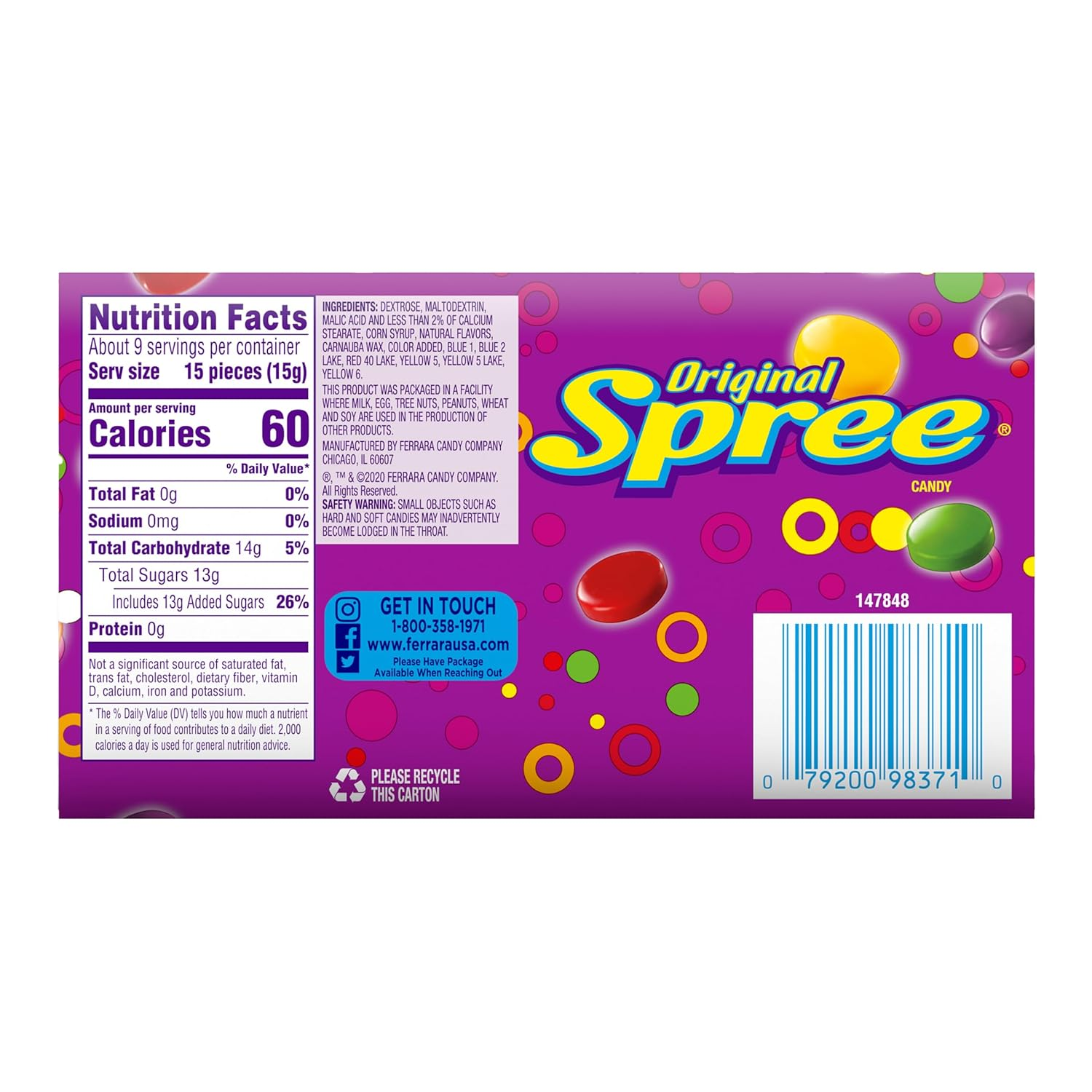 CLASSIC FRUITY CANDY: Sweet on the outside and sour on the inside, Spree candy comes in grape, lemon, lime, cherry and orange. It's a taste sensation PERFECT ANYTIME TREAT: This fruity candy is the perfect anytime treat. They're easy to eat and easy to share. Take a box of candy out with you for a post-lunch snack or a tasty treat at the movies PERFECT FOR SHARING: A box of Spree candy is perfect for sharing with friends, family, or coworkers. Crack them out at a party or keep them on hand for a quick and tasty treat MOVIE SNACK: Spree candy is the ideal movie theater candy companion. Mix them into your popcorn for sweet variety CONVENIENT SWEET TREAT: This 5 oz theater box of Spree candy is the perfect size to put in your bag. Stash one in your car, hide one in your office drawer, get a sweet treat anywhere you go WHERE LEGENDS MEET NOVELTY: Crafting candy is our passion, and it shows. From the timeless icons that have captured hearts to scrumptious new Wonka flavors that push boundaries, we celebrate candy Add Chewy Spree to your cart too and level up the fun. Crunchy, chewy … it's texture overload. Fill your bowl with a rainbow of fun snacks! Look through a child's eyes – it's all about the magic, whimsical, and endless wonder. The Wonkaverse invites you to dive into a universe of magical and colorful candies.