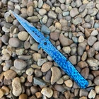 8.55" Hammered Metal Look Stiletto Knife Unleash the Power of Italian-Inspired Elegance Introducing our premium 8.5" stiletto knife, a masterpiece crafted with precision and style. The striking hammered metal finish adds a touch of rugged elegance, while the lightning-fast assisted opening mechanism ensures you're always ready for action. Key Features: 8.5" Overall Length: Commanding presence and impressive size. 4" Stainless Steel Blade: Durable and razor-sharp cutting edge. Hammered Metal Finish: Unique and eye-catching design. Spring Assisted Opening: Quick and effortless deployment. Blue Handle: Stylish and ergonomic for a comfortable grip. Perfect for: Outdoor enthusiasts Knife collectors Everyday carry (EDC) Tactical purposes Elevate Your Knife Collection Experience the perfect blend of form and function with this exceptional stiletto knife. Order yours today and discover the power and style of Italian craftsmanship. We strive for positive Feedback on all transactions. Your satisfaction is very important to us, if you experience a problem of any kind with your purchase please contact us first before leaving any feedback or opening any claims, any issues will be resolved more efficiently if you contact us first and deal directly with us. We do stand behind our products and will do anything in our power to make sure that you feel satisfied with your purchase. If you are not happy with your purchase, quality, DOA items. PLEASE email us , We would be more than happy to replace the item. Thank you for the cooperation.