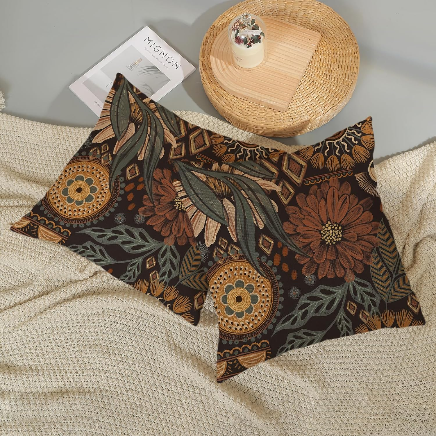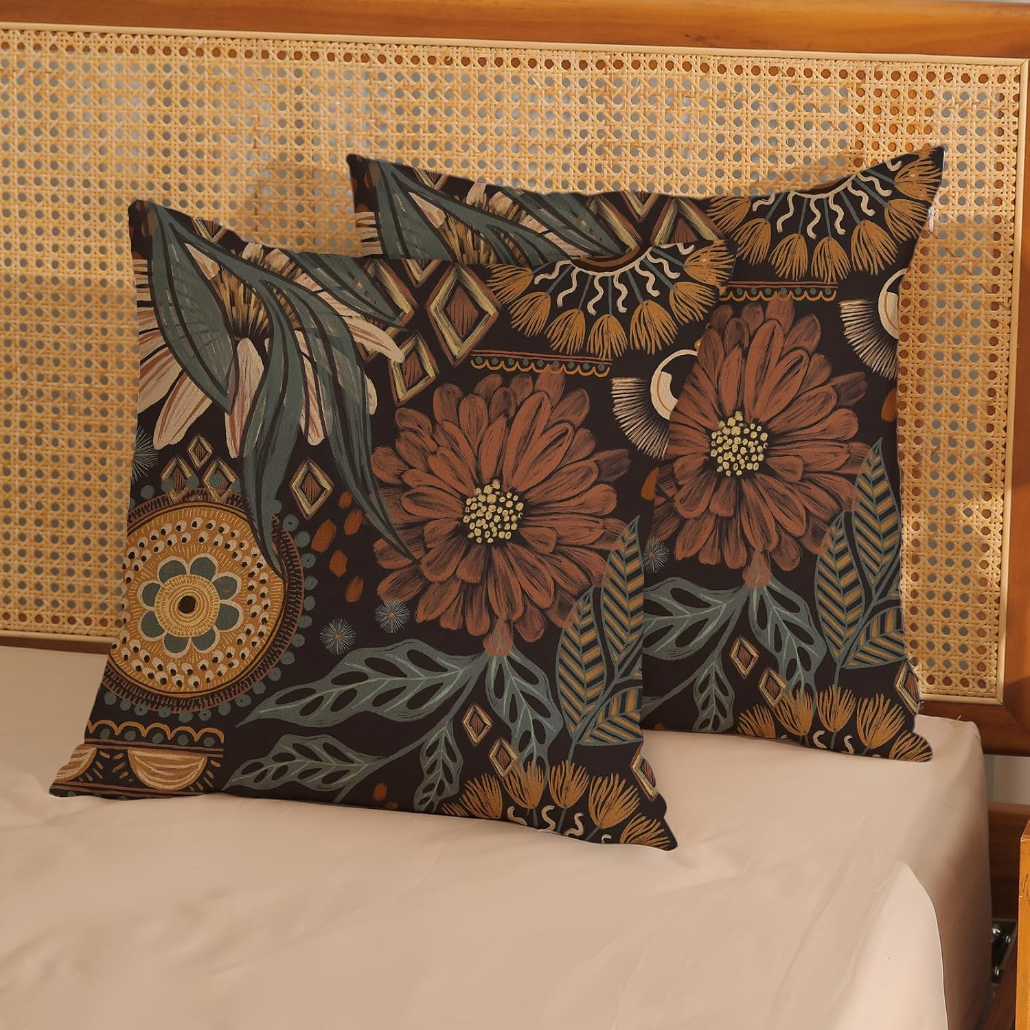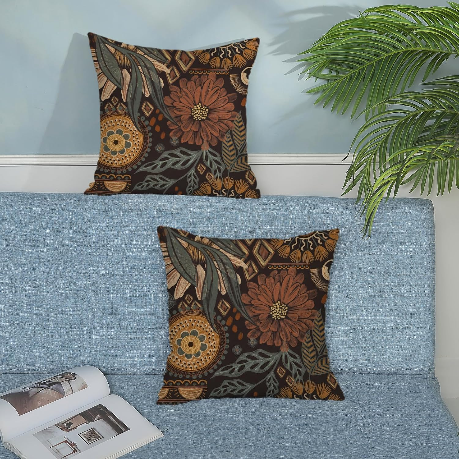 Linen 【Size & Material】Our boho pillow covers 18x18 set of 2 is made of 100% durable linen material. This boho cushion covers are beautifully designed with tropical boho flower leaves Palm that won't fade and are perfect for outdoor decorations. 【Package Included】Spring throw pillow covers 18x18 inch, no inserts or fillings. 【Easy to Wear】Summer tropical pillow covers is a hidden zipper opening, which is the same color as the fabric. Insert and remove pillow inserts with ease. 【Easy to Clean】Vintage floral pillowcase can be hand-washed or machine-washed. You'd better wash the pillow cover with cold or warm water,not ice or hot water,easy to clean and maintain. 【Perfect for home decor】Not only can it be used as a seasonal decoration, but it can also be a great gift for family, loved ones or friends on spring and summer. Use outdoor throw pillows whether on your garden, sofa, bed or office. farmhouse decor pillows can add a warm atmosphere and enhance the beauty of the space. Whether as decoration or as a gift, this vintage throw pillows is perfect. ---------------------------------------------------------------- Hello! Welcome to Zhan Xingyao Colorlife ---------------------------------------------------------------- A great addition to your spring decor Spring is a special day filled with love and warmth. If you want to enhance the festive feel of your home, it's a good idea to add some chic touches. Our set of boho pillowcases are the perfect addition to your spring summer decor. 💖Material Our boho pillow covers made of 100% linen, soft and skin-friendly, no fading or abrasion, can be used outdoors. 💖Size Boho throw pillow covers 18x18 inches (45 x 45 cm). 💖Packaging 2 piece boho floral pillow covers not include Insert or filler. 💖Pattern Design This bohemian cushion case is designed with boho flower in bright and eye-catching colors. It can not only be used as a decoration for sofa cushions, but also a great gift for family, lovers or friends on spring and summer, bringing you a strong spring summer atmosphere. 💖Decoration Application Farmhouse decorations pillows can be used in garden, bench, bed, car. They can add color to a home space and match with other furniture and decorations to create a warm atmosphere. 💖Quality Assurance Are you worried about color difference, quality and workmanship? Our product quality and workmanship are strictly controlled during our production process. We select high-quality materials, including fabrics and wires, to ensure a premium product. We pay attention to details and conduct strict quality inspections according to standards to ensure color fastness and durability. We believe that only through such fine production can we bring you satisfactory products. In this four seasons, Welcome to our store and let us open a new chapter in home life together.
