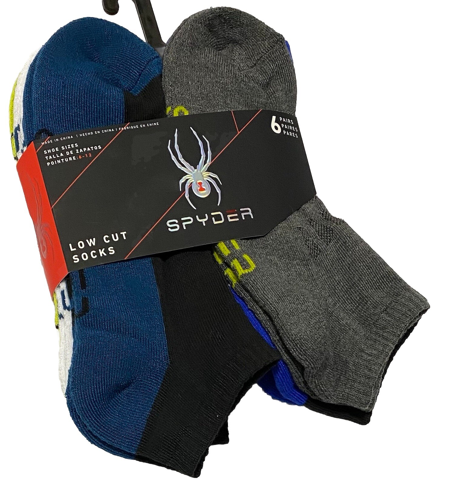 Spyder 6-Pairs Men's Low Cut Socks Assorted Half Cushion 97% Polyester 3% Spandex Sock Size: 10-13 fits Shoe Size: 6-12 New In Package