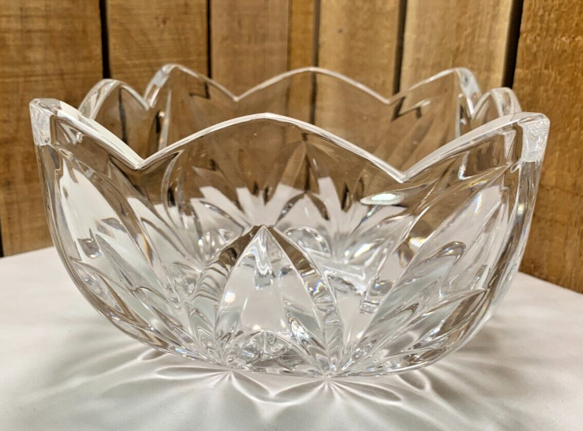 Beautiful Square Crystal Candy, Nut or Snack Dish or Bowl. Approximately 5 3/4"L x 5 3/4"W x 3 3/4"H and weighs 2 lbs 7 oz. This item does not appear to have any cracks or chips. It does have normal wear on the bottom. Please see all photos as they are part of the description. We try to list as many details as possible, however some items are vintage and pre-owned so flaws are to be expected. We try to find out as much information as possible on each item we have available. On occasion we may make a mistake and appreciate your feedback.