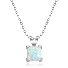 Princess Opal Pendant Necklace Set in Solid Sterling Silver Pendant measures 8mm 18" sterling silver chain included.