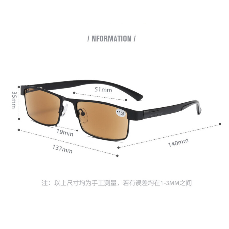 Square Tinted +1.00 Reading Glasses Men Fashion Metal Frame Outdoor Sunglasses Description Condition: New without Tags Frame Material : Metal Lens Material:Resin Gender :Women/Men Lens width: 51 mm Lens Height : 35 mm Bridge Width : 19 mm Frame Width: 137 mm Temple Length :140 mm Package included: 1* Reading Glasses (Not contain boxes and other accessories) Note: 1. Due to the different monitor and light effect, the actual color of the item might be slightly different from the color showed on the pictures. Thank you! 2. Please allow 1-3mm measuring deviation due to manual measurement. Brand FELRES MPN Does Not Apply Model 072 Lens Material Resin Country/Region of Manufacture China Frame Material Metal Type Reading Glasses Department Unisex Adults Style Square Features Full Frame Lens Height 35 mm Lens Width 51 mm Bridge Width 19 mm Frame Width 137 mm Temple Length 140 mm Personalized No Lens Technology Tinted Theme Classic, Designer, Outdoor, Retro UV Protection 4 Year Manufactured 2020-2029 Lens Color Brown Frame Color Black Magnification Strength +1.00 strength
