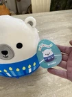 The "Squishmallow 8 inch Brooke the Polar Bear Hanukkah Plush" is a small, white plush toy from the Squishmallows brand. It features a retired design and is washable, making it suitable for users of all ages. Specifically themed for Hanukkah, this adorable polar bear is a great addition to any Squishmallows collection or holiday display. With its soft and squishy texture, this plush toy is sure to bring joy to children and adults alike, making it a versatile and charming gift option for any occasion.