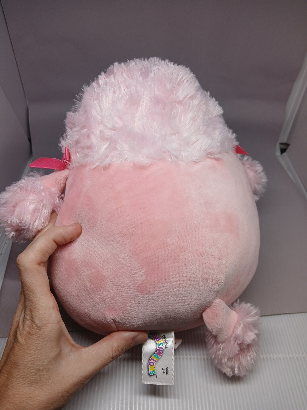 This adorable Squishmallow plush toy is perfect for any dog lover, big or small. Meet Chloe, a pink poodle with tags and a washable design. Measuring at 8 inches, this plush toy is great for back to school or any occasion. The recommended age range for this toy is 3+ and it is made by the trusted brand Kellytoy. This plush toy is part of the Squishmallows character family and is sure to be a hit with anyone who loves collecting stuffed animals. Don't miss out on this cute and cuddly addition to your collection!