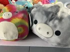 The Squishmallow lot consists of various sizes of stuffed animals, including monsters, unicorns, and other collectibles.