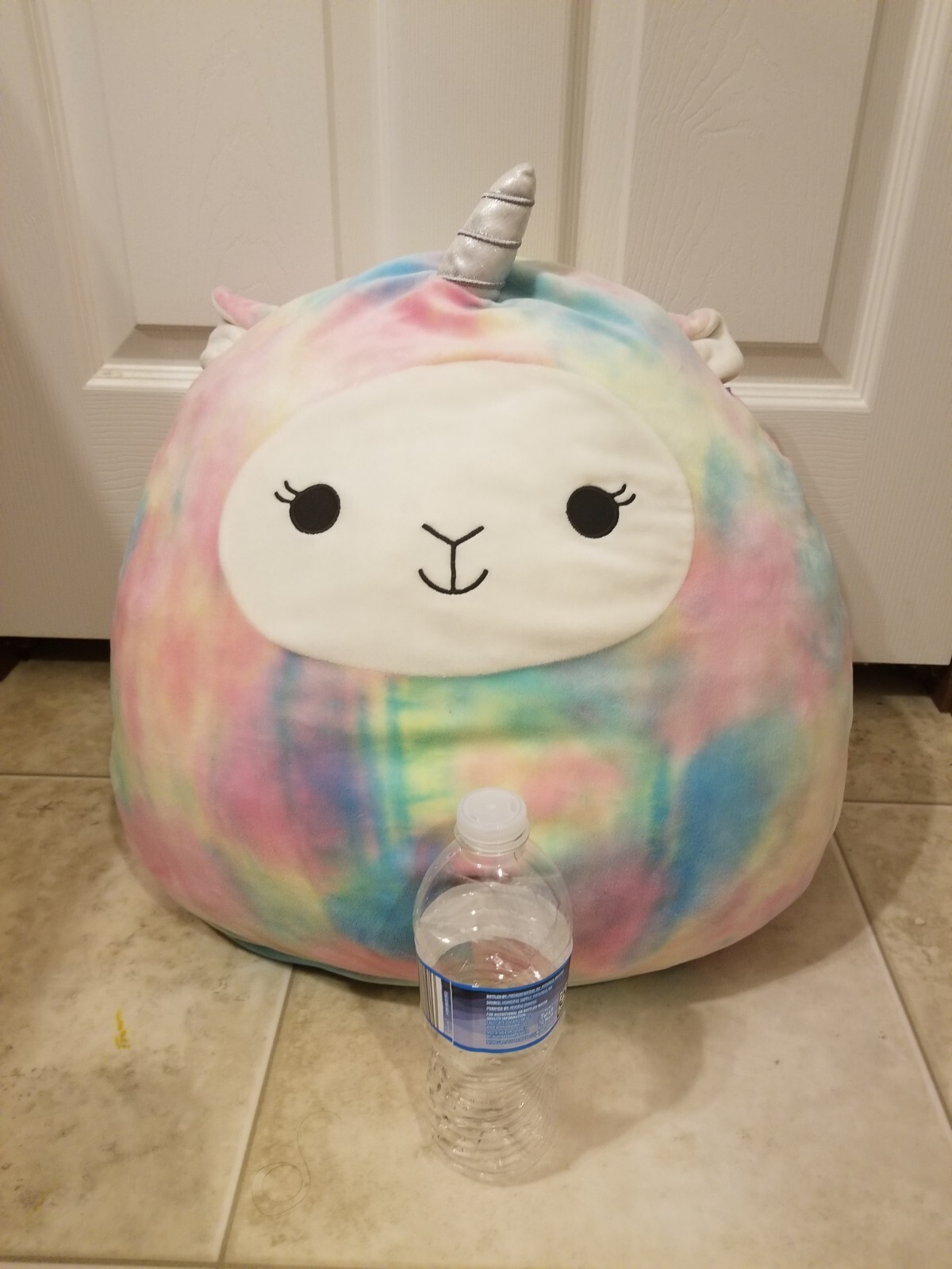 This Squishmallow llamacorn is so soft and huggable—perfect for cuddles or as a fun decorative pillow! The tie-dye rainbow colors are vibrant and eye-catching. Though it has some stains and no tag, it’s still super plush and comfy. Great for unicorn and llama lovers who want a unique, oversized squishy friend! Shipping is efficient, just be ready to fluff it back up. Love the whimsical design!