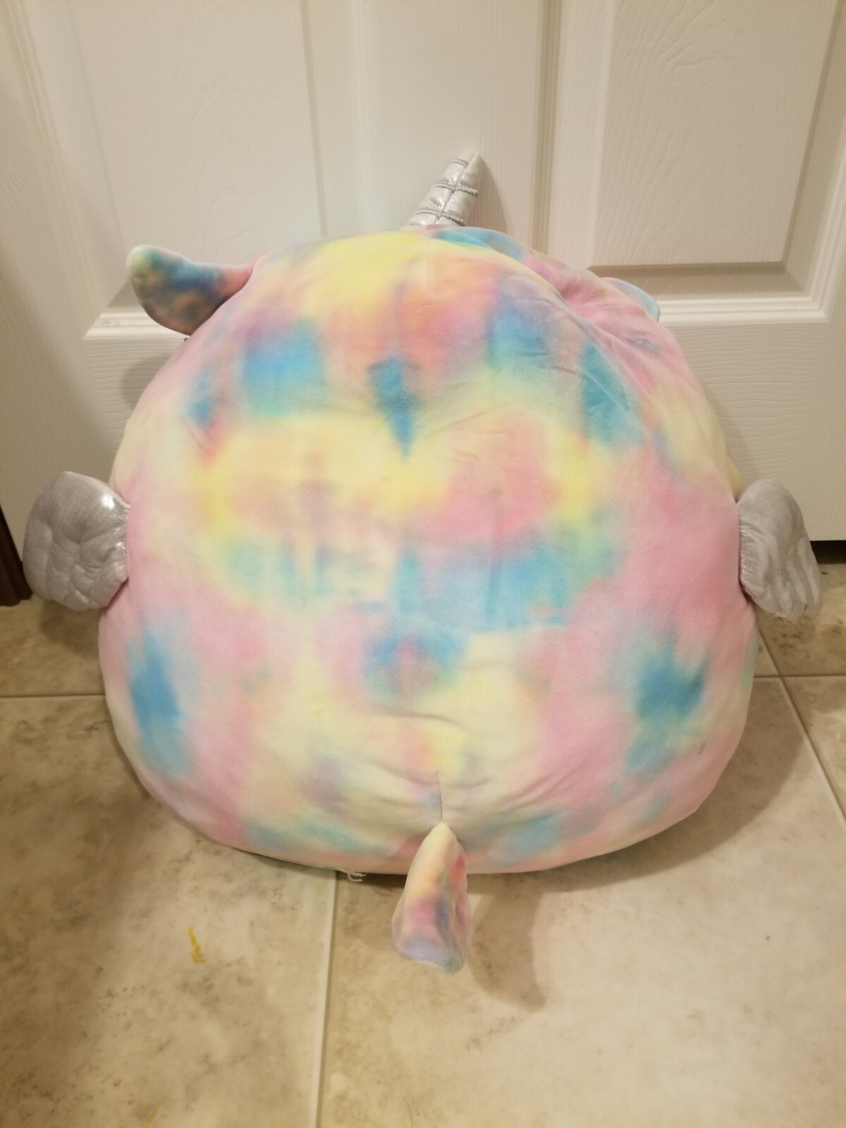 Squishmallow Lucy May llama unicorn 18" tie-dye rainbow stain spots no tag plush pillow For sale is a large squishmallow llamacorn / llama unicorn, with horn and wings Size: about 18 x 16 inch Condition: has multiple stain spots. One stain spots close to nose, one on butt area, two small ones on bottom. Please look at the pictures carefully. May have other stain spots. No tag, tag was cut off. The filling is a little plumped. Shipping: it will be squeezed into box for shipping