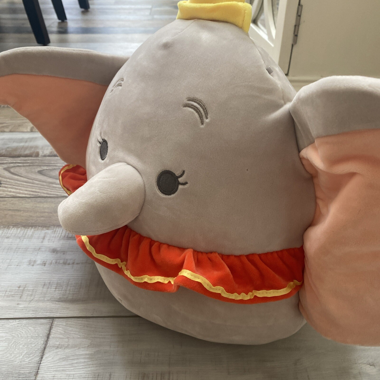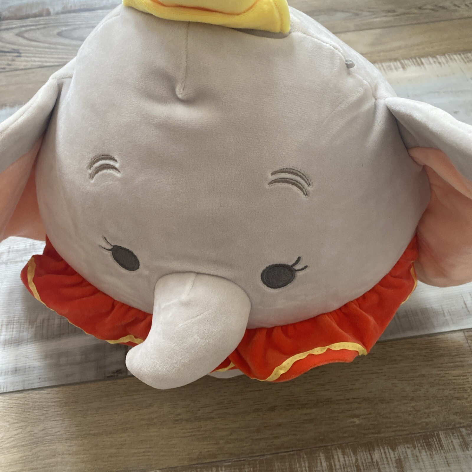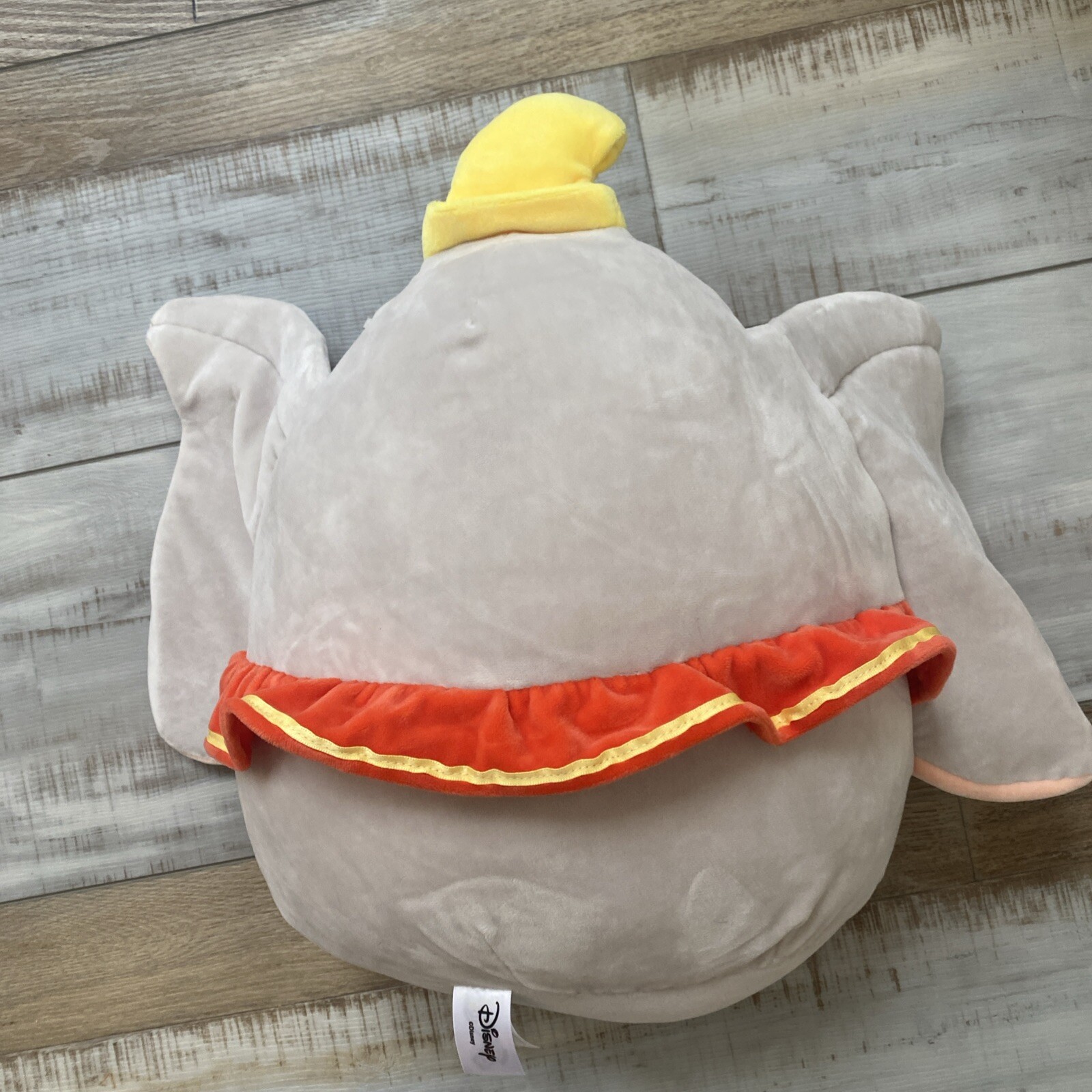 This is a medium-sized plush toy featuring the character Dumbo from the Disney franchise. This stuffed animal is part of the Squishmallows collection, known for its soft and huggable texture, making it a perfect addition to any Disney or Dumbo fan's collection.