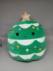 The product is an 8-inch Squishmallow plush toy named JOHANN in the shape of a Christmas tree for the year 2023. It features a snow star design and is suitable for ages 3 and up. The plush toy is green in color and belongs to the Squishmallows character family.