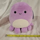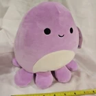 This is an 8-inch Squishmallow plush toy named Violet the Octopus, part of the Kellytoy brand's 2021 collection. The toy is small, in a purple color, and features a washable design. It belongs to the character family "violet."