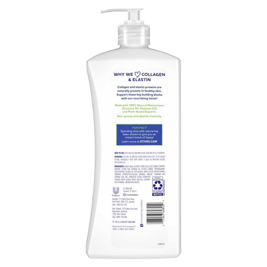 Store New Arrivals Add to Favorite View Feedback Contact St. Ives Renewing Hand & Body Lotion for Women with Pump, Daily Moisturizer Collagen Elastin for Dry Skin, Made with 100% Natural Moisturizers, 21 Fl Oz, 4 Pack Description Item Volume 21 Fluid Ounces Active Ingredients Glycerin Brand St. Ives Country of Origin Australia Age Range (Description) Adult Skin Type All, Combination, Dry, Mature, Normal Package Dimensions 9.96 x 7.76 x 4.37 inches; 6.17 Pounds Manufacturer Unilever ST. IVES RENEWING BODY LOTION with Collagen & Elastin brings 100% of the daily hydration your skin needs to glow QUENCH YOUR SKIN Youthful skin is always in! Wrap your body in this rich, renewing moisturizer blended with collagen & elastin for beautiful, supple skin INSPIRED BY NATURE Made with 100% naturally sourced, plant-derived moisturizers, this skin-quenching lotion has a non-greasy formula that absorbs instantly RENEW YOUR SKIN FROM WITHIN! St. Ives Renewing Collagen & Elastin Body Lotion is paraben free, dermatologist tested, and suitable for even the most sensitive skin HOW TO USE This body moisturizer is designed for daily use — smooth it on after your shower or bath for all-day hydration and softness. Give your skin that TLC it deserves! Youthful-looking skin is always in. Wrap your body in St. Ives Renewing Collagen & Elastin Body Lotion for beautiful, supple skin. Inspired by nature and made with 100% naturally sourced, plant-derived moisturizers like soybean oil and glycerin, the non-greasy formula absorbs instantly to restore and rejuvenate thirsty skin. Dermatologist tested and paraben free, this renewing body moisturizer is suitable for even the most sensitive skin types, and with this pack of four keeps skin rejuvenated for even longer. How To Use: Squeeze 1 to 2 pumps of lotion into your palms and spread all over your body from top to toe. Rub in small circular motions with gentle pressure to boost blood flow and awaken your skin. Layer as you go, adding more lotion to extra-dry areas like elbows and knees. Use daily to give your skin that TLC it deserves! At St. Ives, we harness the power of familiar ingredients from nature such as fuzzy apricots, soothing oatmeal, energizing citrus, and more to leave skin feeling clean, bright and refreshed. Discover the bright side of skin care with St. Ives! We use 100% natural exfoliants like crushed walnut shell powder in our face scrubs, 100% naturally sourced moisturizers in our body lotions, and 100% naturally sourced extracts in our body washes. Try other St. Ives products, including face scrubs, body washes, and lotions for dry skin. ABOUT US We offer the best prices around on high quality products. Our E-store includes media such as books, movies, music and games while offering electronics, toys, sporting apparel, clothing, tools, general home, garden items and more. SHIPPING We are always working hard to ensure your package arrives as soon as possible. Please understand that some factors like weather, high postal traffic, and the performance of shipping companies are outside of our control. We offer free shipping to the lower 48 states and ship within 2 business days of payment, usually sooner. We do not accept P.O. Boxes. Please provide a physical address. RETURNS We offer a 30-Day Return Policy on items which you are not completely satisfied with. You have the option for a full-refund or an exchange of the item. No returns are available on items shipped outside of the USA. PAYMENT We accept PayPal. CONTACT US This page content is yet to come Please ad us to your favorite seller and visit again later Thank You CUSTOMER SATISFACTION We try our very best to make sure every customer is completely satisfied. If there's a problem, message us! We're happy to help.