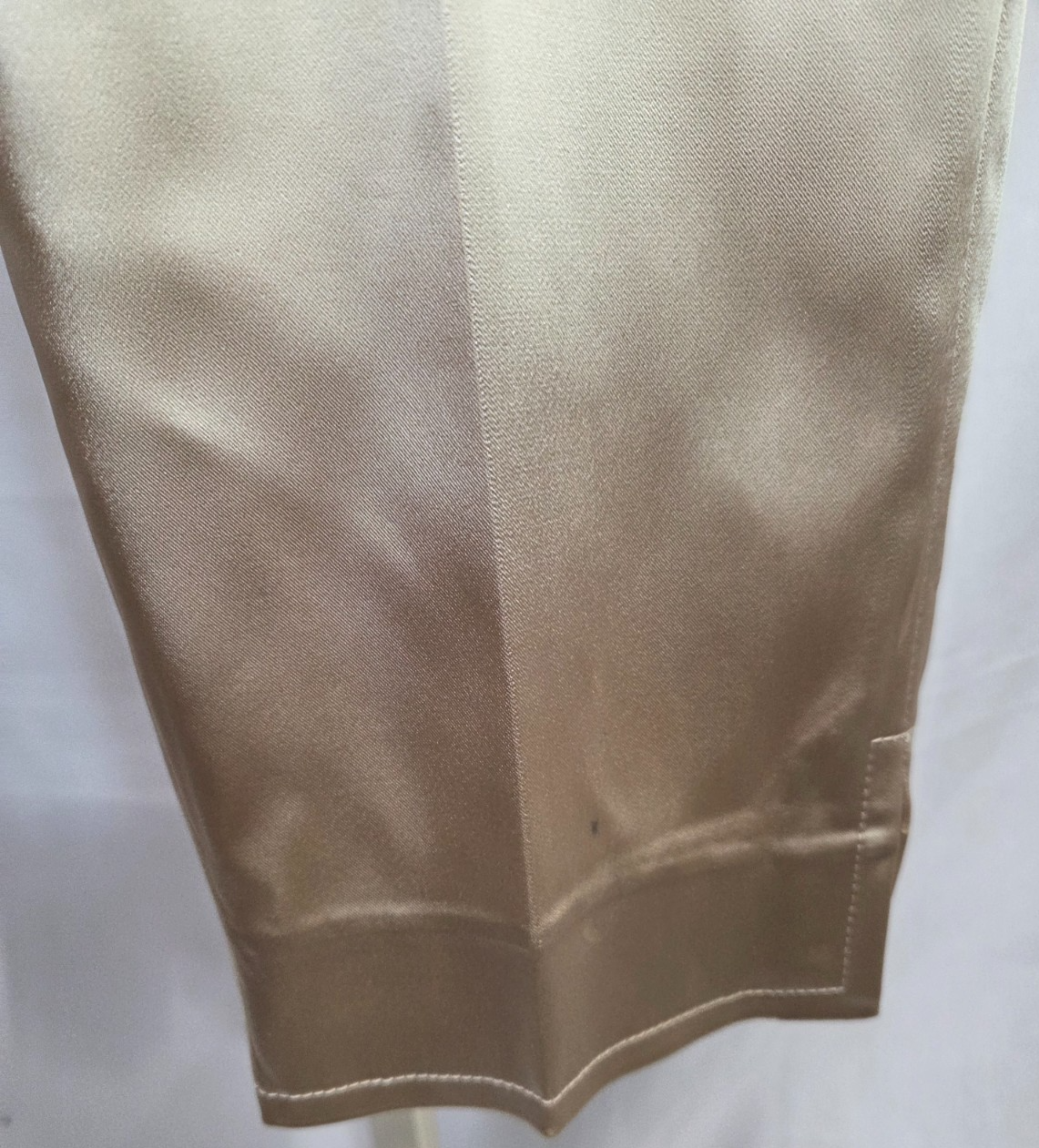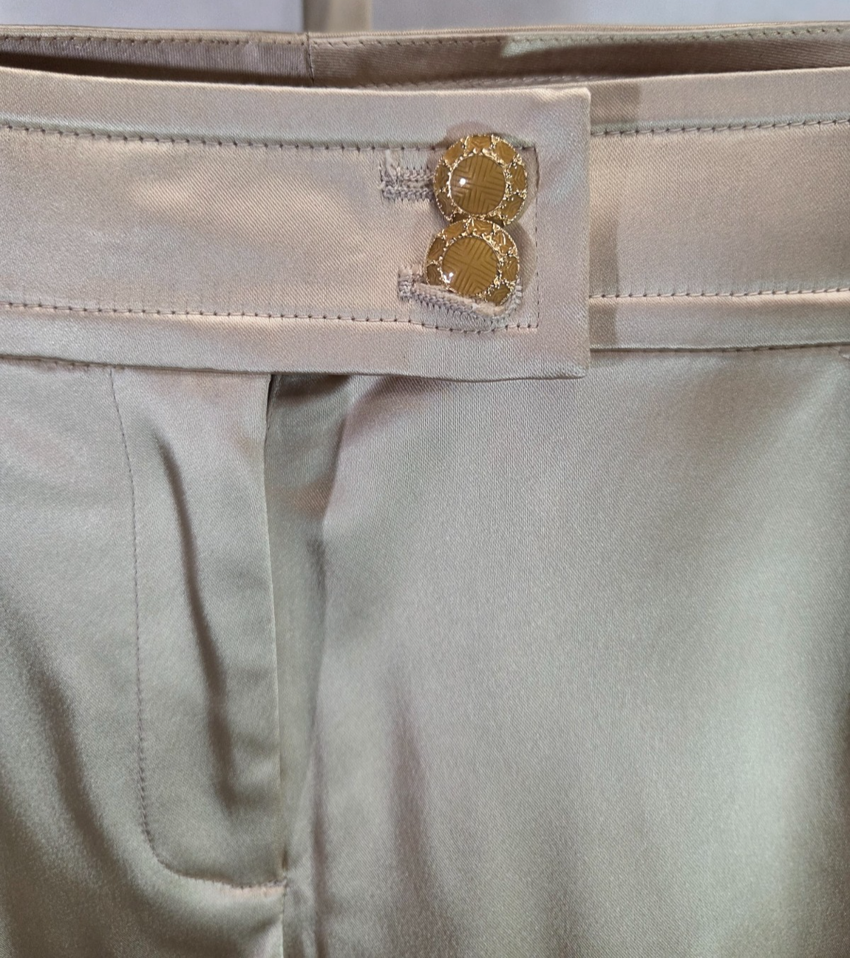 Women’s St. John Black Label Gold Liquid Satin Straight Leg Pants Size 10 Brand: St. John Overall Condition: Excellent condition. See pictures for details. Material: Silk and polyester. Shipped with USPS Priority or Flat Rate, or if possible First Class Mail. Description: two button front closure, pockets, straight flat front legs, gorgeous design. Details for Shopper Waist: 34 inches Length: 39 inches Inseam: 29.5 Inches Payment Policies We accept payment through PayPal, credit card, and debit card. Please note that the item may be relisted if payment is not received within the 10 day period. Shipping Policies Delivery estimates will be displayed at checkout. In-store pickup is also available if you would like to visit us in store. We ship to Continental United States only. Terms of Sale Each item we sell is unique. There are no exchanges for the same item available. All items are carefully inspected by My Sister’s Closet of Monroe County’s quality control team prior to shipping. Please carefully review item details. If you have questions, please message us regarding the item before purchasing. Note: Due to the different monitor and light effects, the actual color of the item shown might be slightly different from the color in pictures. Return Policy We strive to describe and measure our items accurately. If your order is not what you expected, we accept returns under the following conditions: The item was not as described as listed The wrong item was shipped. The item does not fit. If the wrong item was shipped, we will attempt to replace it with the item originally ordered. Please note - items not returned in the exact same condition, with tags attached, may be subject to a partial refund to account for loss of the item’s value. Please refer to eBay Return policy for more details. You are covered by the eBay Money Back Guarantee if you receive an item that is not described as listed. Return Requirements: The buyer must return the item within 30 days of receipt. Buyer is responsible for return shipping charges. The item(s) must be returned in the original condition, unworn, with tags attached. Thank you for shopping with us! A little bit more about us… My Sister’s Closet is a nonprofit serving women in poverty since 1998. Our mission is to help women move closer to economic self-sufficiency by providing essential career development tools. This includes job training, mentoring, advocacy services, and professional attire for job interviews to help them find employment. We have helped over 2800 women thus far. Most clients we serve have been dealing with homelessness, domestic violence, illness, divorce, job loss, economic recovery and/or lack basic education. Visit Our eBay Store