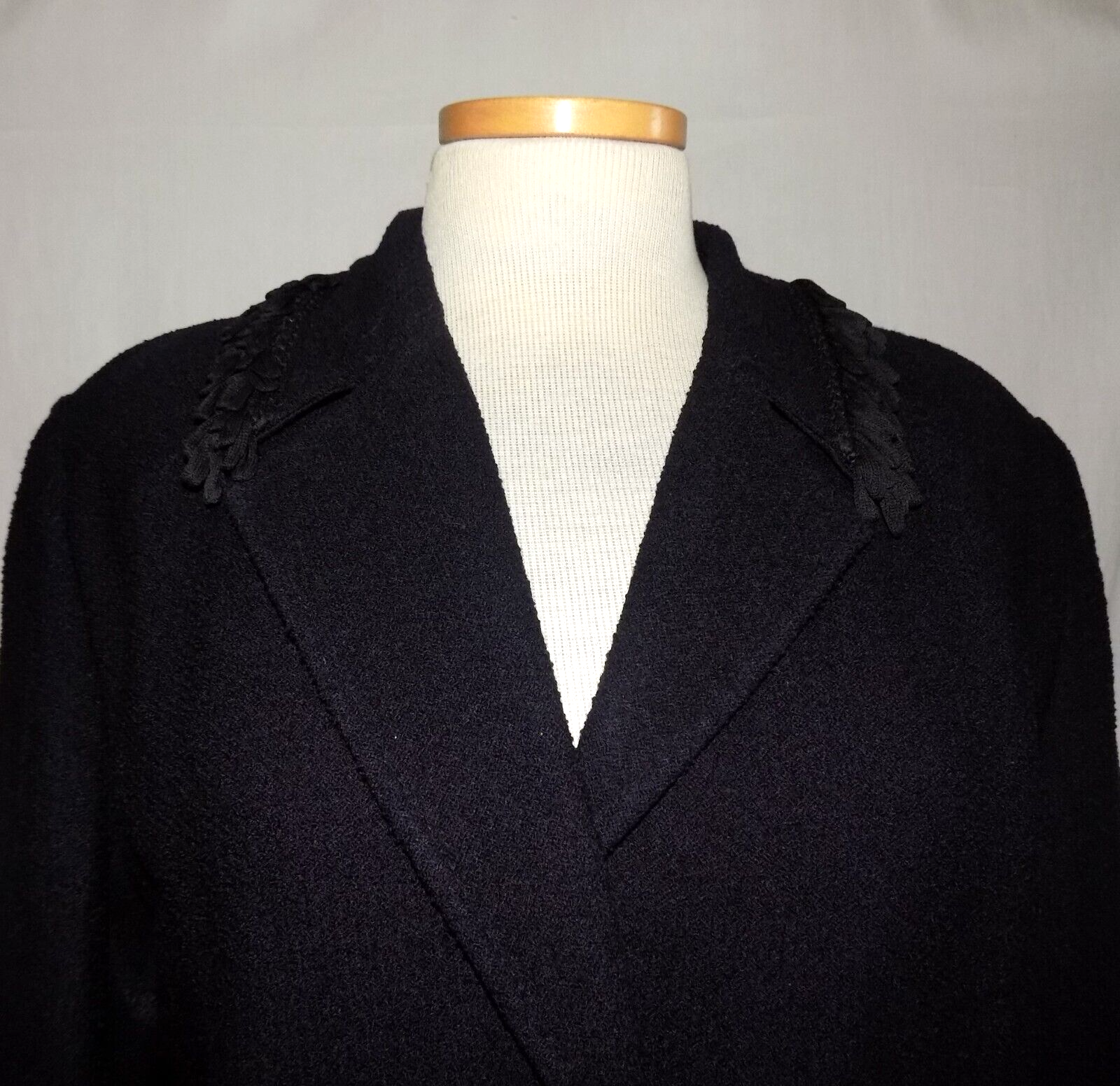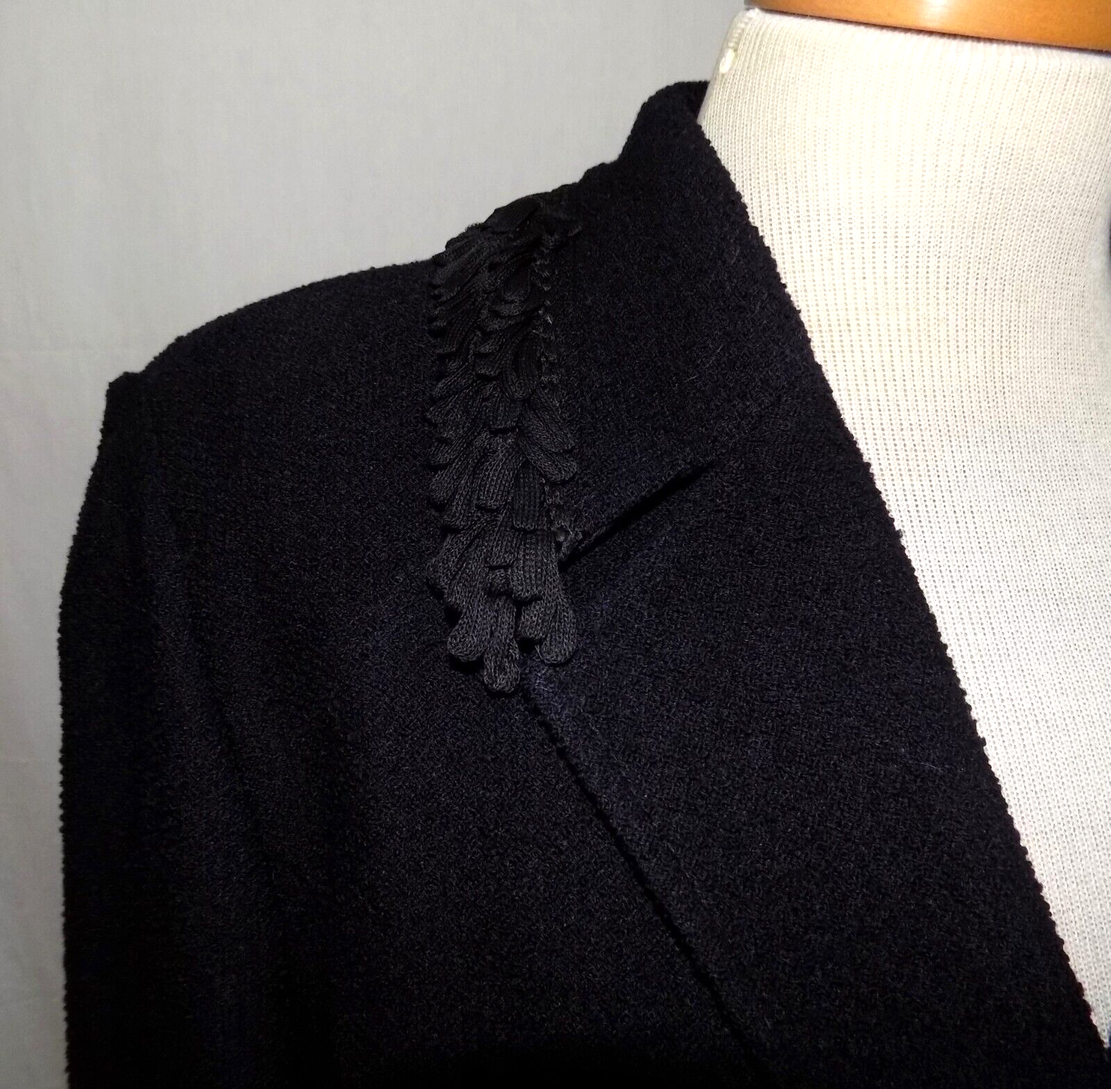 25 - If you are interested in having us sell your nice designer items on eBay, please contact us for information! CONSIGN WITH US NOW YOU ARE BIDDING ON A BEAUTIFUL ST. JOHN COLLECTION TEXTURED KNIT W/ BRAIDED FRINGE TRIM BUTTON FRONT BLAZER JACKET COLOR IS BLACK TEXTURED KNIT W/ TONAL BLACK WOVEN BRAIDED TRIM AT COLLAR & SLEEVE ENDS BLACK BRAIDED TRIM IS FURTHER EMBELLISHED W/ SHORT LOOPED FRINGE WOOL BLEND FABRICATION SIZE 14 BLAZER JACKET TAILORED SILHOUETTE FIGURE-FLATTERING PRINCESS SEAMS NOTCH COLLAR FRONT BUTTON CLOSURE 3-BUTTON PLACKET THREE BEAUTIFUL SQUARE-SHAPED BLACK ORNATE OPEN-DESIGN BUTTON CLOSURES DOWN PLACKET LOWER FRONT SIDE-ENTRY ON-SEAM POCKETS LONG SLEEVES W/ 1" FRINGE TRIM AT SLEEVE ENDS SHOULDER PADS SLIGHTLY CURVED HEM UNLINED CHEST 42", WAIST 39", HEM 45", SLEEVES 24.5", SHOULDERS 18.25", LENGTH 28" NO MATERIAL CONTENT TAG - LOOKS & FEELS LIKE A TEXTURED SANTANA-LIKE KNIT, A WOOL & RAYON BLEND IN EXCELLENT PRE-OWNED CONDITION PLEASE SEE "CONDITION DESCRIPTION" BOX ABOVE FOR ADDITIONAL DETAILS Photos do not always reflect the exact color of the item. The color you see depends on the camera, the lighting, and your computer monitor. Check Out My Other Items ! We combine shipping! Import duties, taxes and charges are not included in the item price or shipping charges. These charges are the buyer’s responsibility. Please check with your country’s customs office to determine what these additional costs will be prior to bidding/buying.” These charges are normally collected by the delivering freight (shipping) company or when you pick the item up – do not confuse them for additional shipping charges.” We do not mark merchandise values below value or mark items as gifts’ - US and International government regulations prohibit such behavior.” We specialize in higher end designers and are always looking for men's and women's clothing and accessories. Why take your fine items to a resale store when you can have access to million’s of people that shop on eBay? Why donate when you can get cash back? If you are interested, please e-mail us and we will forward the information to you. Look at our feedback. We are honest sellers and have sold thousands of designer items. PLEASE EMAIL US WITH ANY QUESTIONS WE RESERVE THE RIGHT TO RELIST ANY ITEM AFTER 2 DAYS IF THERE IS NO COMMUNICATION BETWEEN BUYER AND SELLER OR IF YOUR FEEDBACK IS 5 OR LESS. WE SHIP MONDAY THROUGH FRIDAY AND ALL OF OUR ITEMS SHIP THE DAY AFTER WE RECEIVE PAYMENT UNLESS THE SHIPPING DAY FALLS ON A WEEKEND OR A HOLIDAY OUR SHIPMENTS ARE MAILED USING USPS PRIORITY MAIL UNLESS A DIFFERENT CARRIER IS SPECIFIED IN THE LISTING. WHEN WE ARE PAYING FOR SHIPPING WE RESERVE THE RIGHT TO SHIP WITH ANOTHER CARRIER. SIGNATURE CONFIRMATION WILL BE REQUIRED ON ALL SHIPMENTS OF $250.00 OR HIGHER. INTERNATIONAL SHIPMENTS WILL BE SHIPPED ON THE SAME SCHEDULE AS DOMESTIC SHIPMENTS. WE WILL ONLY SHIP INTERNATIONAL SHIPMENTS EXPRESS MAIL VIA USPS. THIS IS BECAUSE EXPRESS MAIL IS THE ONLY SHIPPING VIA USPS THAT CAN BE TRACKED SO FOR YOUR PROTECTION WE HAVE HAD TO CHANGE OUR POLICY. WE WILL COMBINE SHIPPING FOR MULTIPLE PURCHASES ON OUR LISTINGS AS LONG AS THEY ARE PAID IN THE SAME TRANSACTION. WE WILL ONLY SHIP TO THE ADDRESS PROVIDED BY EBAY AT THE TIME OF THE PAYMENT TRANSACTION. PLEASE MAKE SURE THE ADDRESS YOU HAVE ON FILE WITH EBAY IS ACCURATE PRIOR TO PAYMENT. OUR ITEMS MAY HAVE CUT AND/OR MARKED TAGS. THIS IS DONE AT THE RETAIL LEVEL TO PREVENT RETURNS. THANKS FOR BIDDING! Be sure to add us to your favorites list ! 1 AL54 I KF - M a: _#%,_#),__%,__),_)),_)),!(),!(),!*),!&),!^),!^),!%),!%),!$),!$),!$),