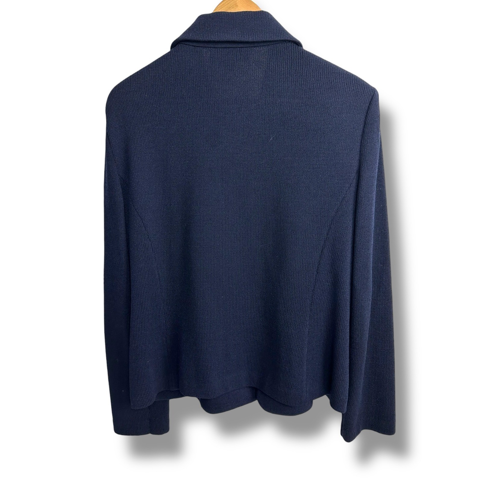 St John Collection by Marie Gray Navy Blue Knit Full Zipper Jacket 14. Classic navy blue knit jacket from St. John Collection by Marie Gray. This stylish piece features a full zipper closure with a signature gold-toned zipper pull adorned with the "SJ" logo. The jacket has a collared neckline, tailored silhouette with subtle darting for a flattering fit. Perfect for your professional wardrobe or for a sophisticated evening out. Measurements: • Length: 23 in • Chest (pit to pit): 21 in • Sleeve Length: 23 in Style: Basic Jacket Accents: Zipper, Logo Features: Collared, Full Zip, Shoulder Pads Fabric Type: Knit Season: Winter, Spring, Fall Closure: Zip Occasion: Workwear, Business Fit: Classic Garment Care: Dry Clean Only Keywords: St John, Knit Jacket, Zipper Jacket, Navy Blue, Womens Size 14, Designer, Tailored, Business Casual, Office Wear, Evening Out, Gold Hardware, Marie Gray Check photos for item measurements. Items shipped from a pet friendly, smoke-free home