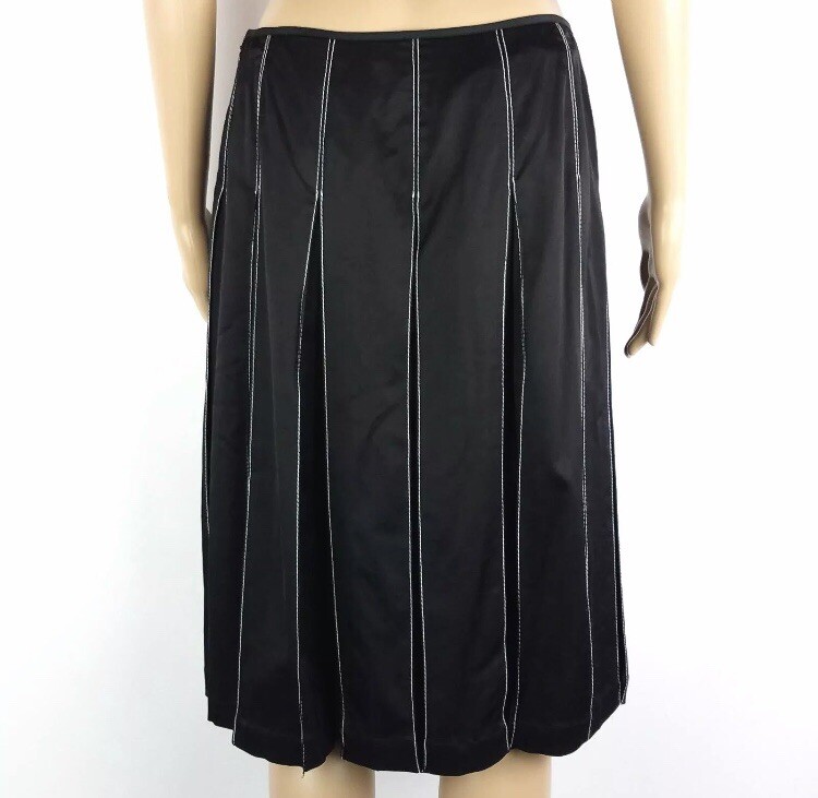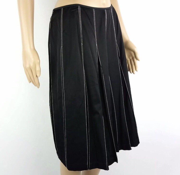 St John Collection Drop Box Pleat Knee Length Skirt -10- Black White Top Stitch. Condition is New with tags. Shipped with USPS Priority Mail Padded Flat Rate Envelope.