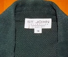 24 - If you are interested in having us sell your nice designer items on eBay, please contact us for information! CONSIGN WITH US NOW YOU ARE BIDDING ON A BEAUTIFUL ST. JOHN COLLECTION TEXTURED JACQUARD KNIT BUTTON FRONT TAILORED BLAZER JACKET COLOR IS A DARK FOREST GREEN SHADE TEXTURED KNIT CONCENTRIC DIAMOND JACQUARD DESIGN PATTERN THROUGHOUT WOOL BLEND FABRICATION SIZE 14 BLAZER JACKET TAILORED SILHOUETTE FIGURE-FLATTERING SEAM DETAIL NOTCH COLLAR FRONT BUTTON CLOSURE SEVEN BUTTON PLACKET SEVEN SMALL GOLD TONE "SJ" LOGO SHANK BUTTON CLOSURES DOWN PLACKET NO POCKETS LONG SLEEVES SHOULDER PADS STRAIGHT HEM UNLINED CHEST 41", WAIST 39", HIPS 44", SLEEVES 23.5", SHOULDERS 17.5", LENGTH 29.5" IN EXCELLENT PRE-OWNED CONDITION Photos do not always reflect the exact color of the item. The color you see depends on the camera, the lighting, and your computer monitor. Check Out My Other Items ! We combine shipping! Import duties, taxes and charges are not included in the item price or shipping charges. These charges are the buyer’s responsibility. Please check with your country’s customs office to determine what these additional costs will be prior to bidding/buying.” These charges are normally collected by the delivering freight (shipping) company or when you pick the item up – do not confuse them for additional shipping charges.” We do not mark merchandise values below value or mark items as gifts’ - US and International government regulations prohibit such behavior.” We specialize in higher end designers and are always looking for men's and women's clothing and accessories. Why take your fine items to a resale store when you can have access to million’s of people that shop on eBay? Why donate when you can get cash back? If you are interested, please e-mail us and we will forward the information to you. Look at our feedback. We are honest sellers and have sold thousands of designer items. PLEASE EMAIL US WITH ANY QUESTIONS WE RESERVE THE RIGHT TO RELIST ANY ITEM AFTER 2 DAYS IF THERE IS NO COMMUNICATION BETWEEN BUYER AND SELLER OR IF YOUR FEEDBACK IS 5 OR LESS. WE SHIP MONDAY THROUGH FRIDAY AND ALL OF OUR ITEMS SHIP THE DAY AFTER WE RECEIVE PAYMENT UNLESS THE SHIPPING DAY FALLS ON A WEEKEND OR A HOLIDAY OUR SHIPMENTS ARE MAILED USING USPS PRIORITY MAIL UNLESS A DIFFERENT CARRIER IS SPECIFIED IN THE LISTING. WHEN WE ARE PAYING FOR SHIPPING WE RESERVE THE RIGHT TO SHIP WITH ANOTHER CARRIER. SIGNATURE CONFIRMATION WILL BE REQUIRED ON ALL SHIPMENTS OF $250.00 OR HIGHER. INTERNATIONAL SHIPMENTS WILL BE SHIPPED ON THE SAME SCHEDULE AS DOMESTIC SHIPMENTS. WE WILL ONLY SHIP INTERNATIONAL SHIPMENTS EXPRESS MAIL VIA USPS. THIS IS BECAUSE EXPRESS MAIL IS THE ONLY SHIPPING VIA USPS THAT CAN BE TRACKED SO FOR YOUR PROTECTION WE HAVE HAD TO CHANGE OUR POLICY. WE WILL COMBINE SHIPPING FOR MULTIPLE PURCHASES ON OUR LISTINGS AS LONG AS THEY ARE PAID IN THE SAME TRANSACTION. WE WILL ONLY SHIP TO THE ADDRESS PROVIDED BY EBAY AT THE TIME OF THE PAYMENT TRANSACTIO N. PLEASE MAKE SURE THE ADDRESS YOU HAVE ON FILE WITH EBAY IS ACCURATE PRIOR TO PAYMENT. OUR ITEMS MAY HAVE CUT AND/OR MARKED TAGS. THIS IS DONE AT THE RETAIL LEVEL TO PREVENT RETURNS. THANKS FOR BIDDING! 1 Be sure to add us to your favorites list ! AL52 I a: __),__),__),_!),_)),_)),!(),!(),!*),!&%,!&%,!&),!^%,!^),!^),!%%,