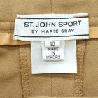 This St John Sport by Marie Gray women's gold logo dress pant in brown, size 10, is a versatile and stylish garment for various occasions. Made from a blend of polyester, viscose, and elastane, these pants feature a solid pattern, zip closure, and a high rise waist. The flat front design with logo accents adds a touch of sophistication, making them perfect for both casual and dressy settings. Machine washable and with a regular fit, these pants are 31 inches in inseam and ideal for the summer, fall, and spring seasons. Approximate measurements Waist:34 inches Rise: 10.5 inches Inseam: 31 inches Fabric Content Polyester Viscose Elastane