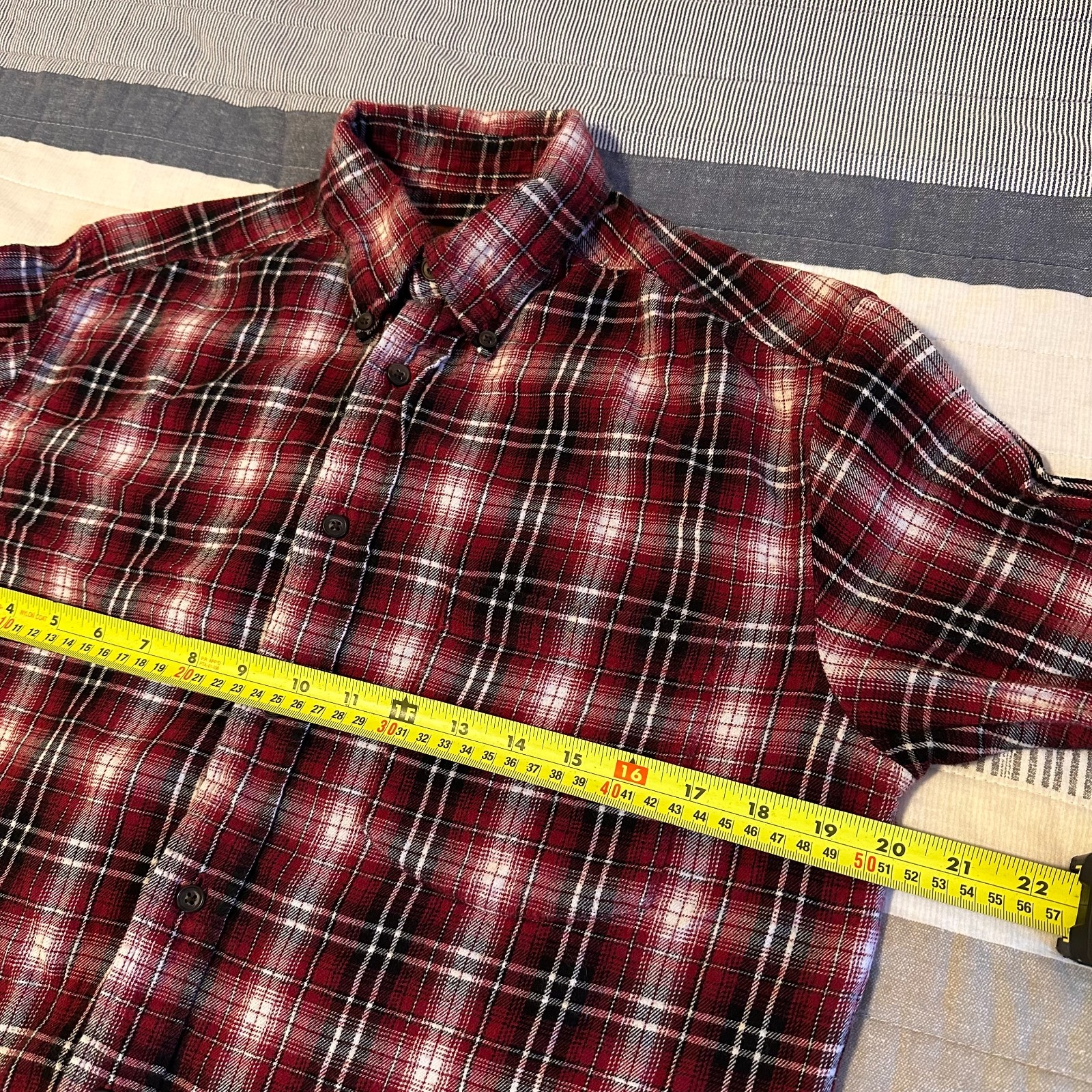 The St. John's Bay Casual Button Down Mens Small Red Plaid Rugged Flannel Shirt is a versatile and rugged piece perfect for various occasions such as travel, casual outings, parties, and workwear. Made of soft cotton flannel, this shirt features a classic button-down collar and long sleeves, making it suitable for all seasons. The red plaid pattern adds a touch of hipster, western, and punk style, while the regular fit and quality construction make it a reliable addition to any wardrobe. Easy to care for with machine washable instructions, this shirt is a must-have for men looking for a comfortable and stylish option. 20 inch chest 26.5 inch length 19 inch sleeve